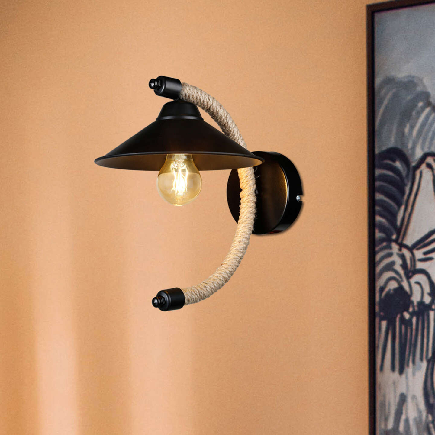 . Elektrostatik Boyalı Metal Kasa İle Organik Halat Sarılı Gövdenin, Abs - Policarbonat Karışım Malzeme Kullanılan Şapka Ve Dekoratif Aksesuarların Birlikte Dizaynı İle Tasarlanan '' Adel Aplik '' Bulunduğu Ortama Modern Tarzı Yansıtır.