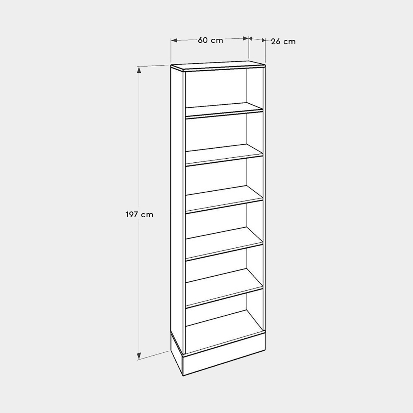 • Ürün ölçüsü: 60x197x26 cm (Genişlik x Yükseklik x Derinlik)