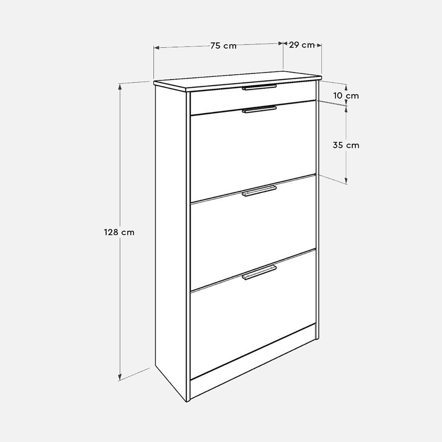 • Ürün ölçüleri: 75x128x29 cm ( Genişlik x Yükseklik x Derinlik )