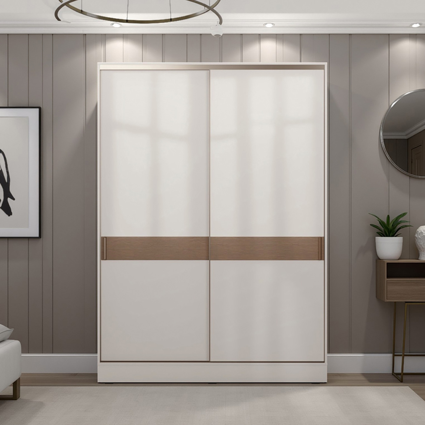 Adore Milano Sürgülü Gardırop Vizon-Zebra
