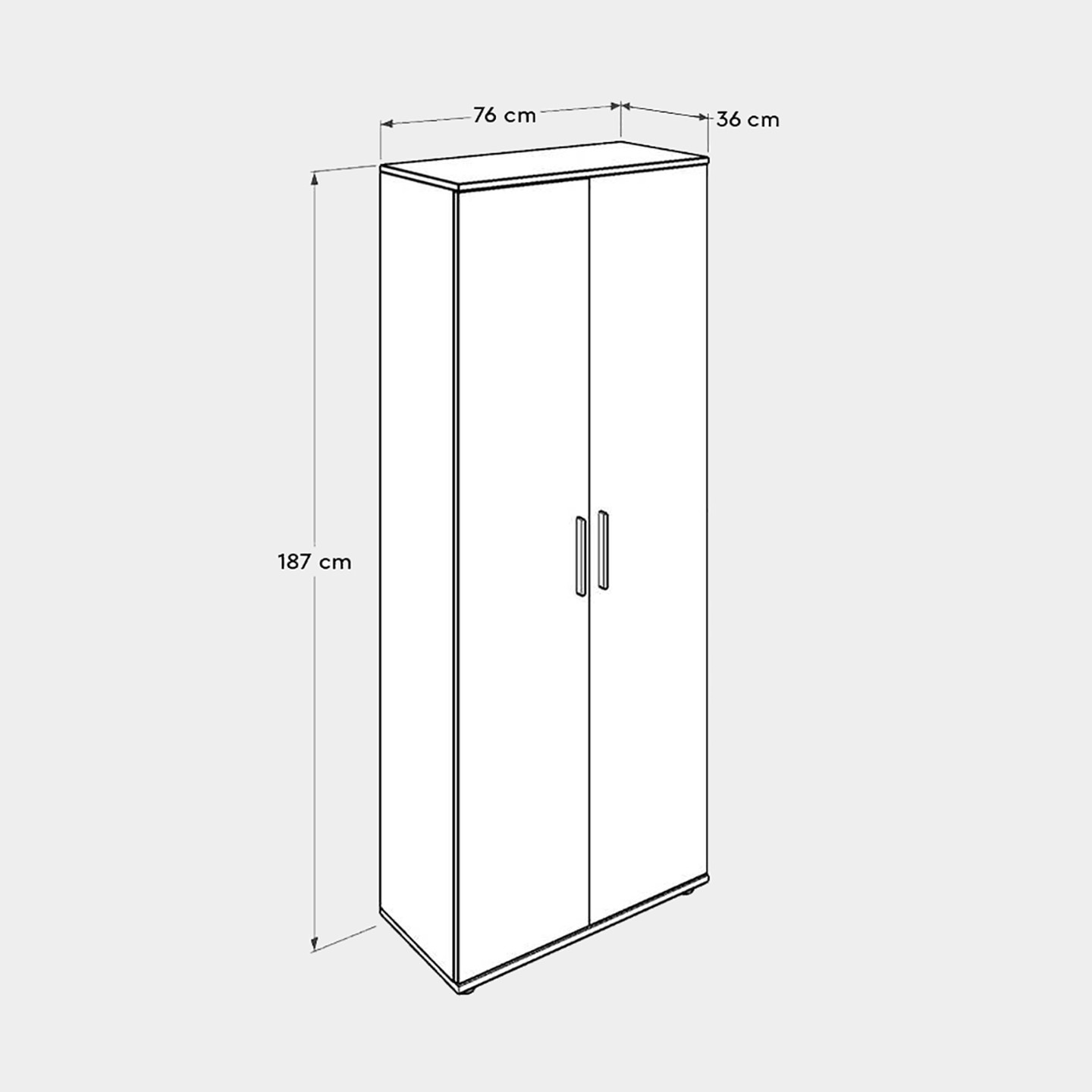 • Ürün ölçüleri: 76x187x36 cm ( Genişlik x Yükseklik x Derinlik )