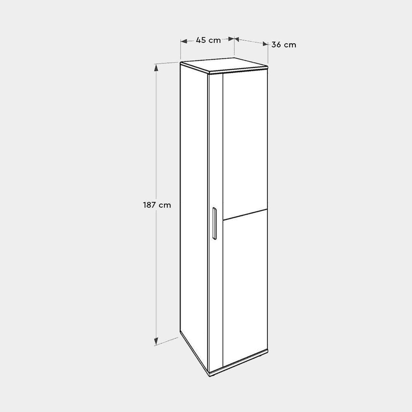 • Ürün ölçüleri: 45x187x36 cm (Genişlik x Yükseklik x Derinlik)