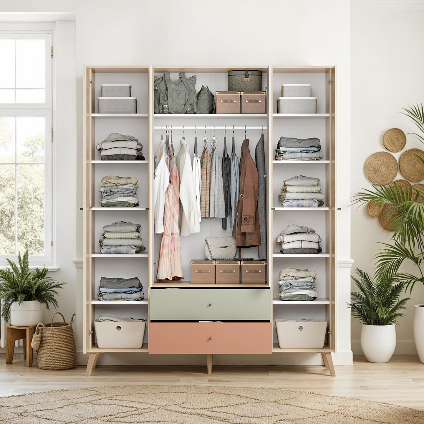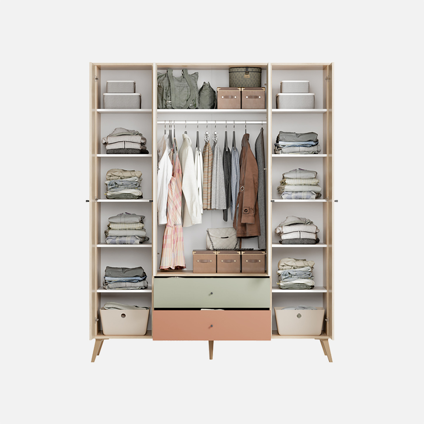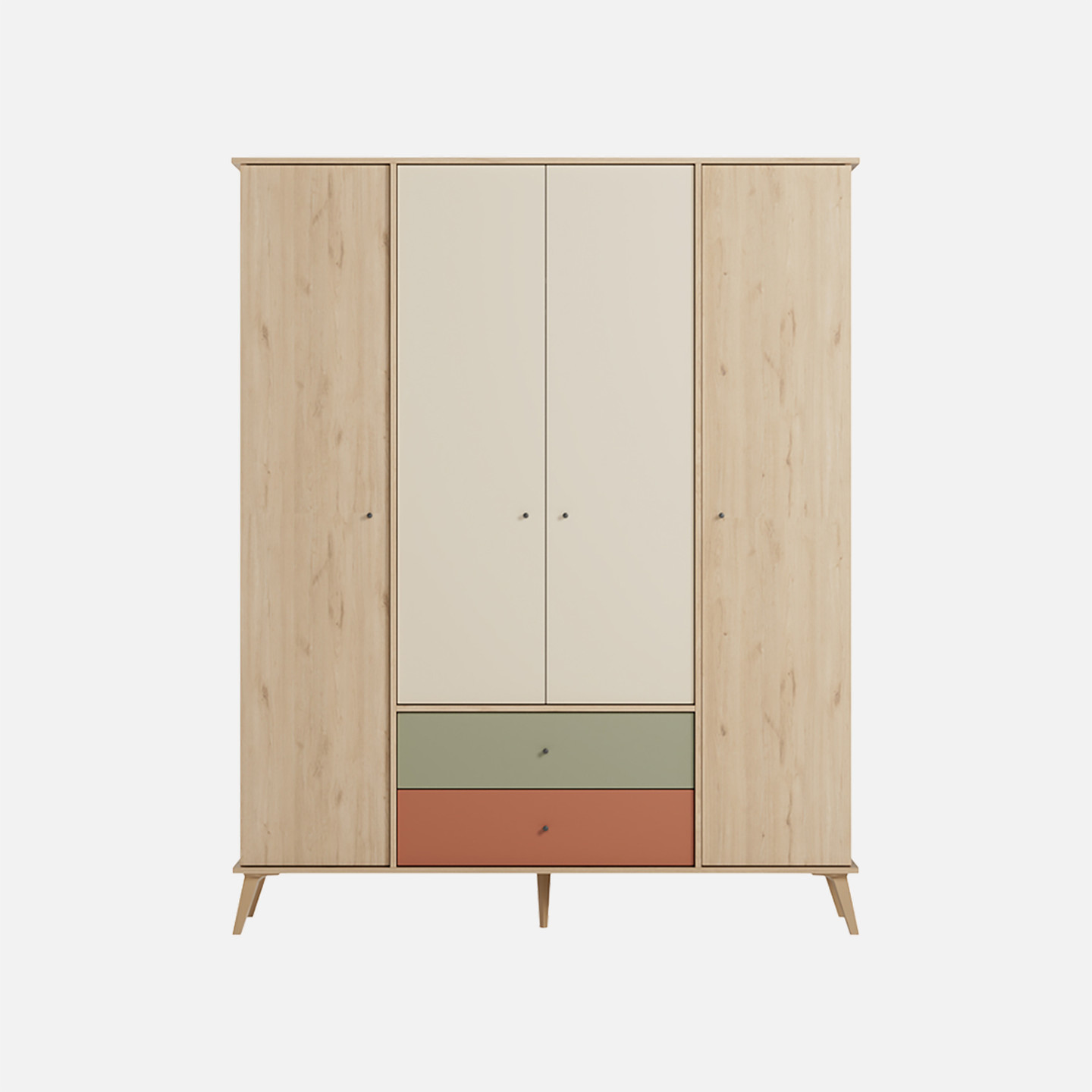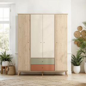 Adore Terra 4 Kapaklı 2 Çekmeceli Gardırop Florida Meşe-Yeşil-Kiremit