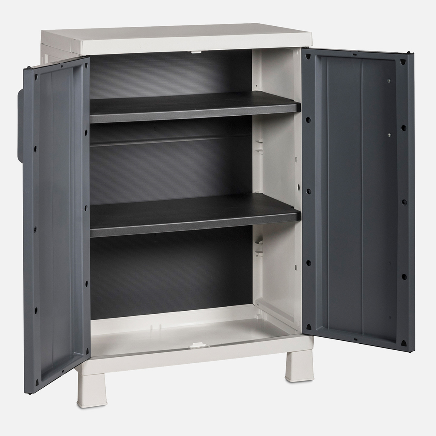 Anniversary 2 Raflı Plastik Dolap Beyaz-Antrasit, evinizde ve garajınızda eşyalarınızı düzenli ve güvenli bir şekilde saklamanız için tasarlanmış pratik bir plastik depolama dolabıdır.