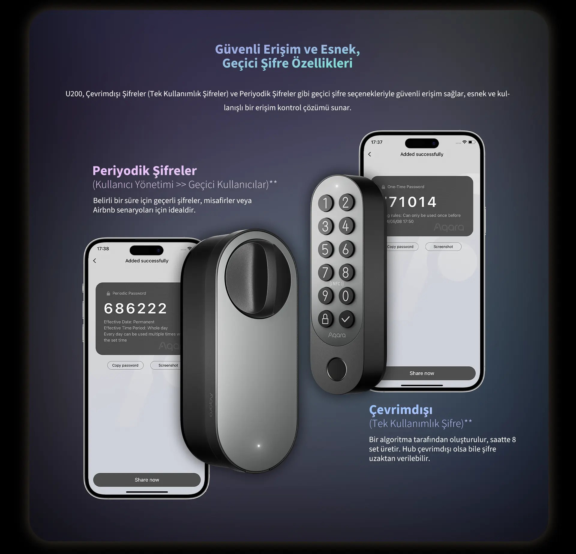 • Uzaktan açma ve periyodik şifre ayarlama