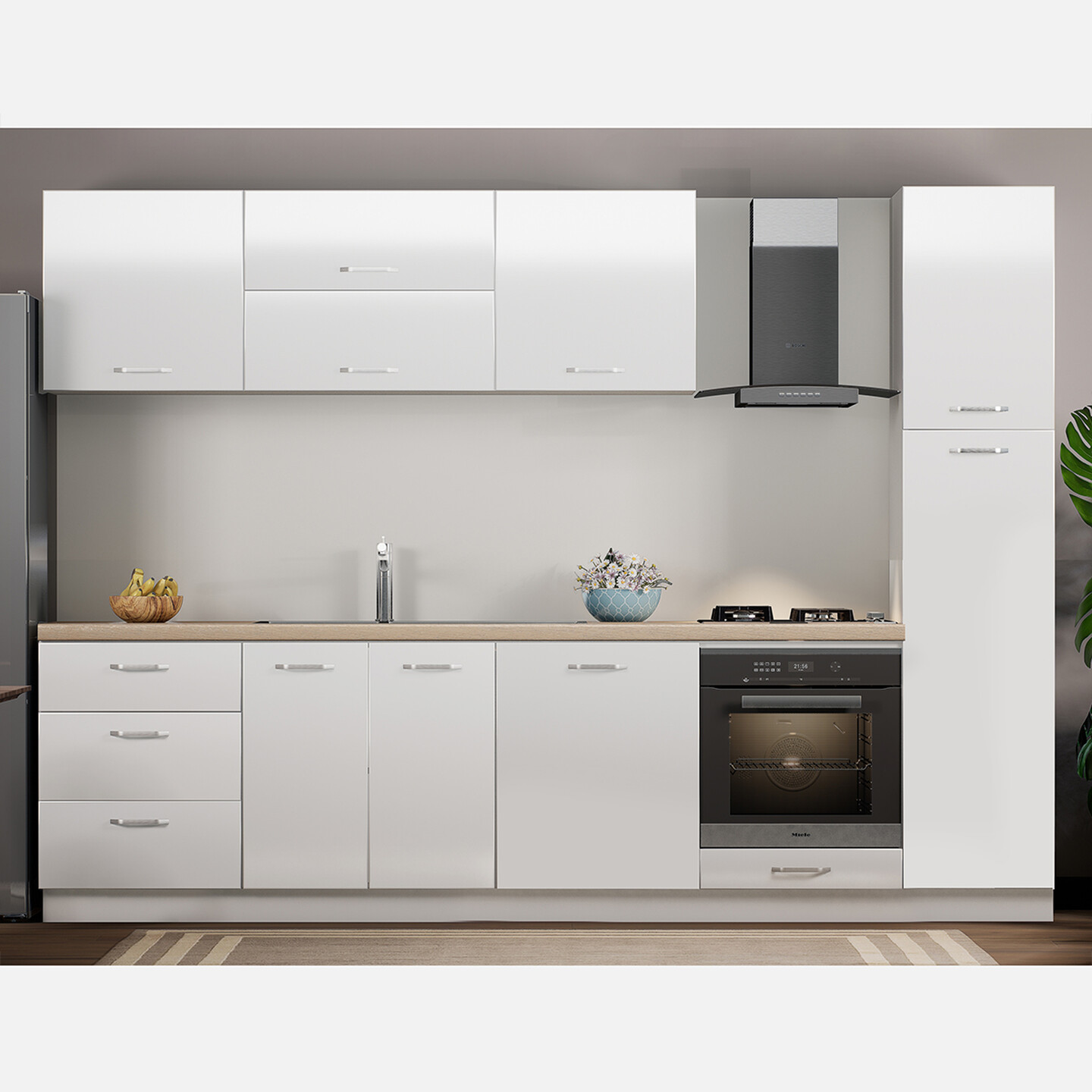 Argemon Roma 3 Çekmeceli Ahşap Beyaz 90 x 255 x 60 cm Mutfak Dolabı