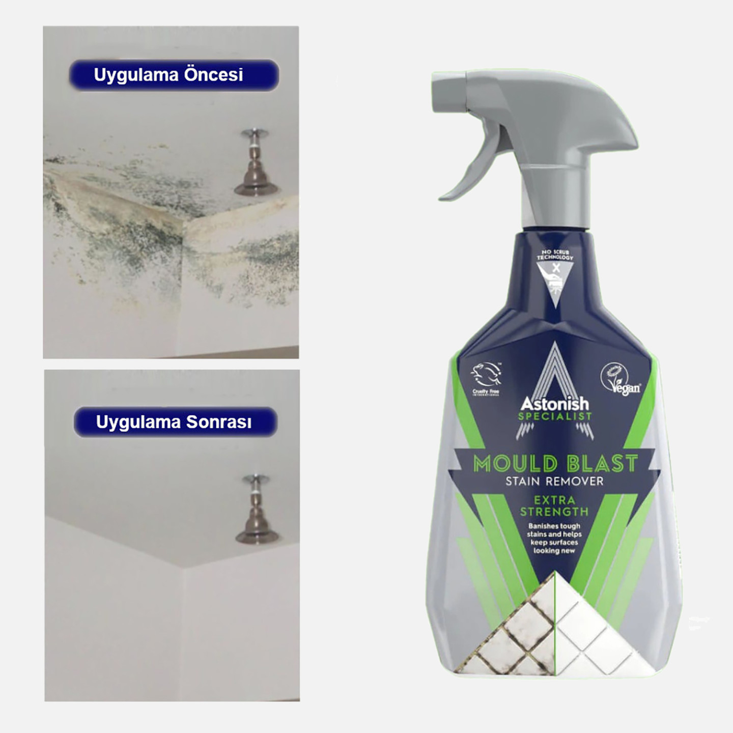 Ovma ihtiyacı olmaksızın siyah küf lekelerini çıkaran bir üründür.
