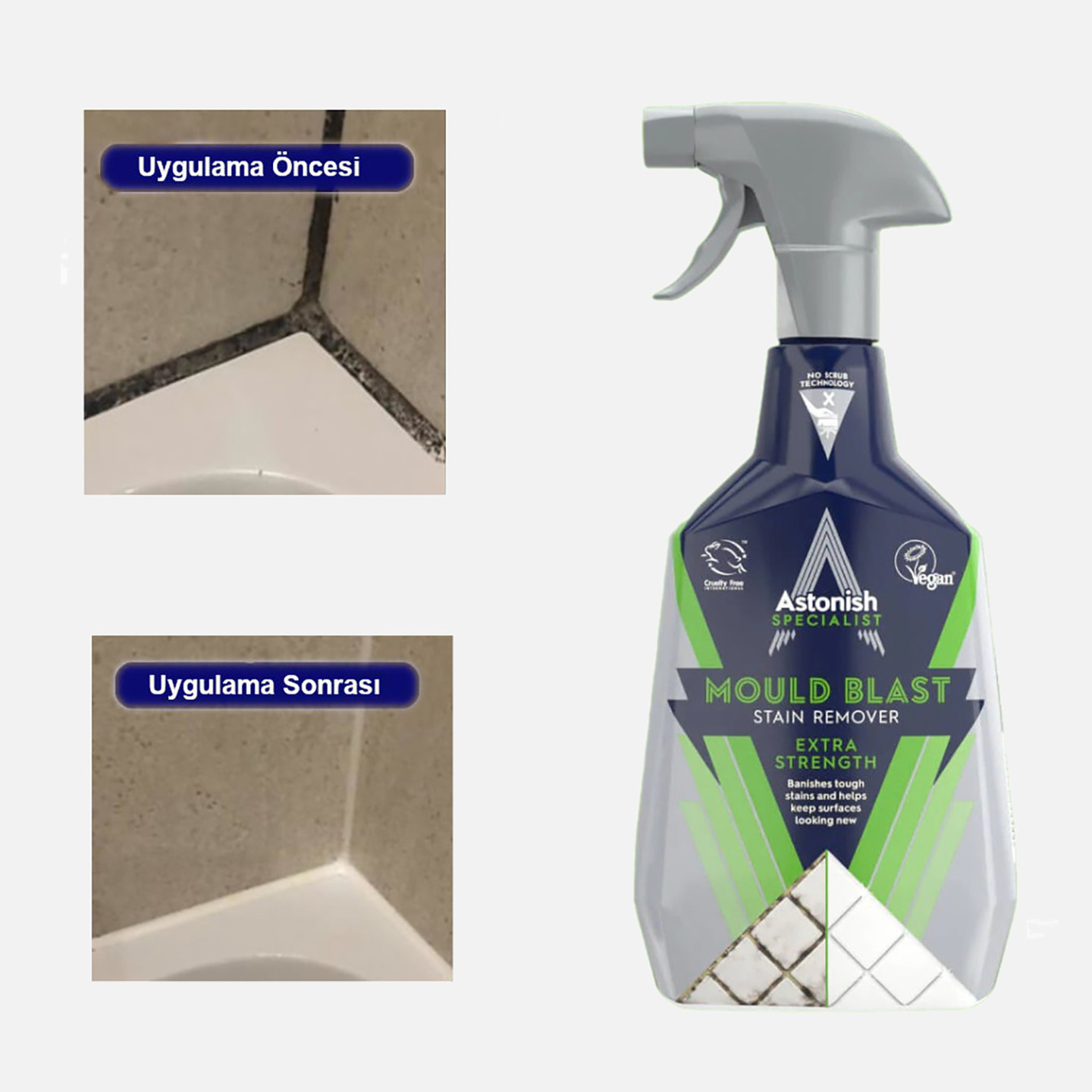 Astonish temizlik ürünleri hiçbir zaman hayvanlar üzerinde test edilmemiştir ve herhangi bir hayvansal içerik veya hayvansal türeve sahip değildir.