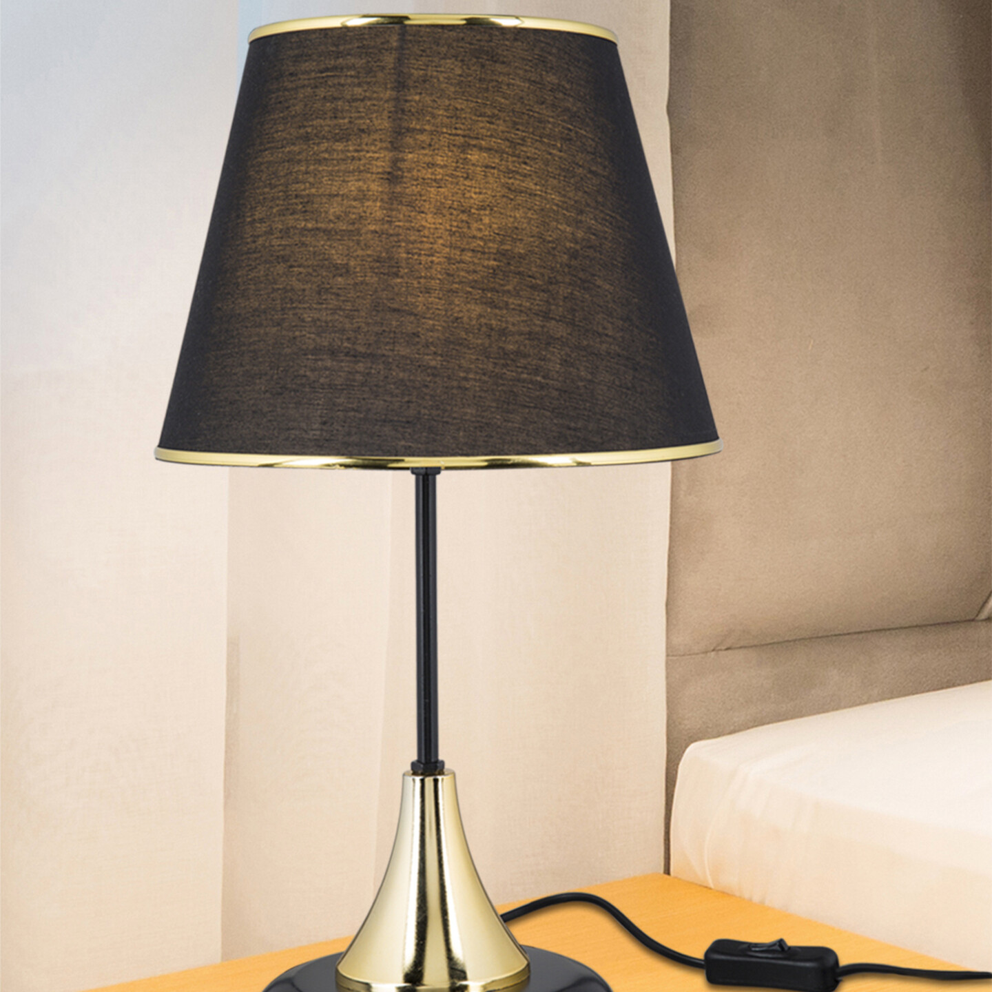 . Elektrostatik Boyalı Metal Tabanlık Ve Metal Gövde, Pvc Üzerine Lamine Edilmiş Kumaş, Gold Kaplama Duy Ve Aksesuarların Birlikte Dizaynı İle Tasarlanan '' Arden Konik Abajur '' Bulunduğu Ortama Farklı Bir Ambiyans Katar.