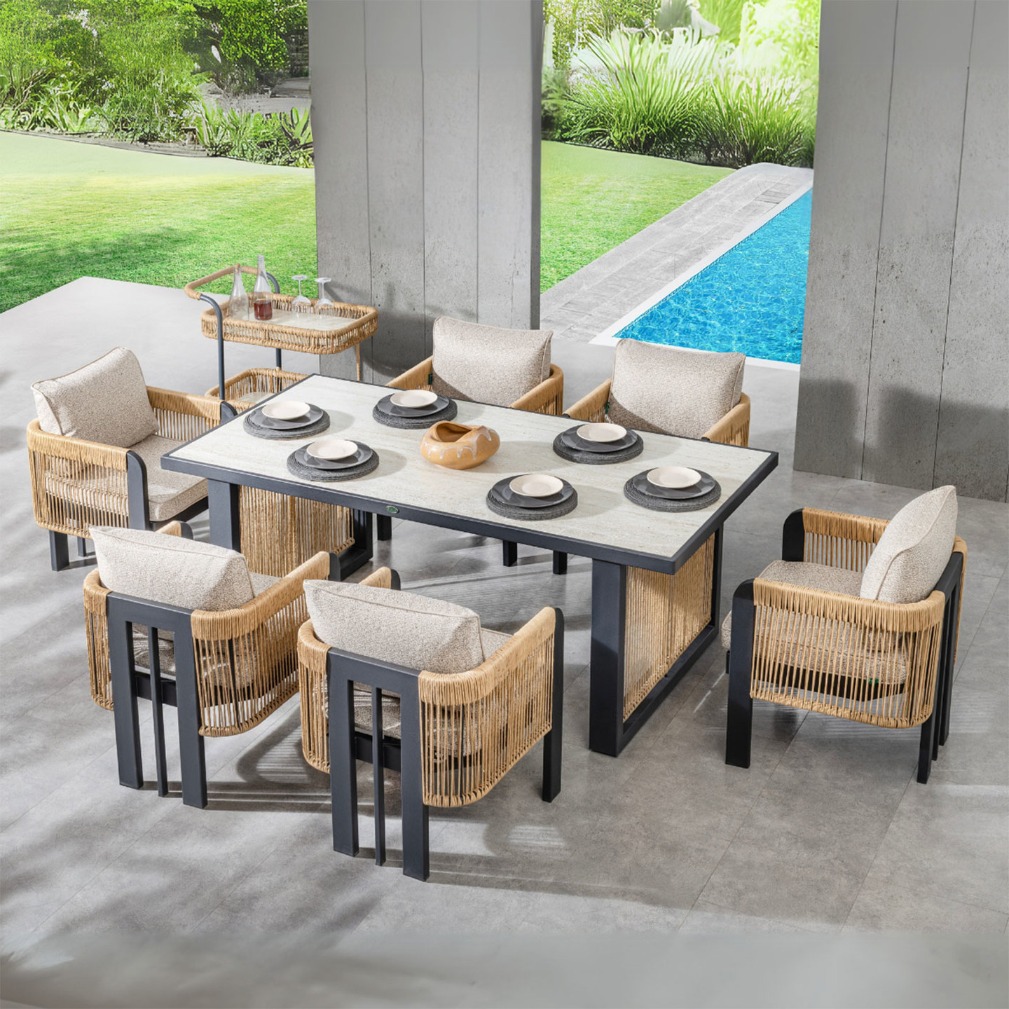 Malzeme: Alüminyum & Rattan Örgü & Seramik Cam