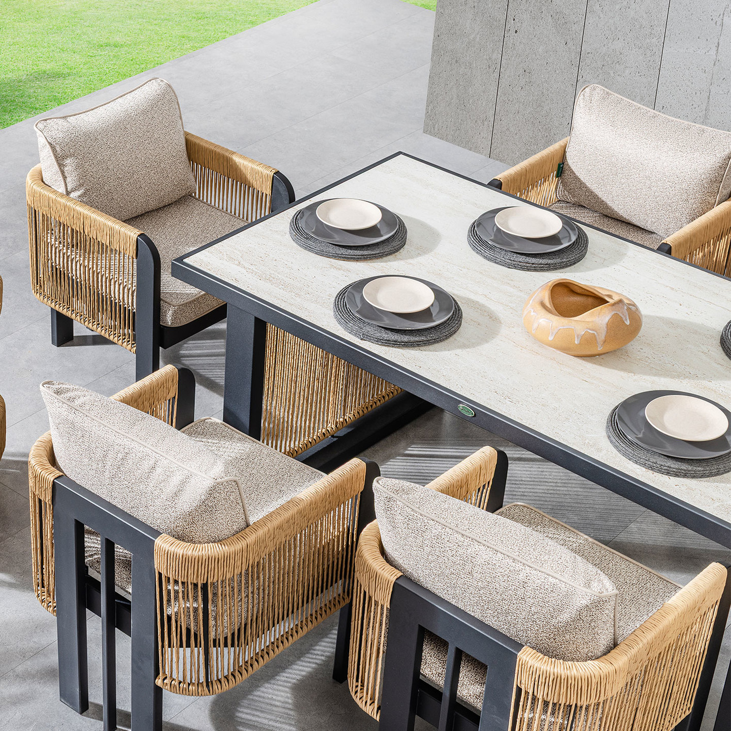 Terasınızda ya da bahçenizde günün yorgunluğunu atabileceğiniz, arkadaşlarınızla yaz keyfinin tadına varabileceğiniz son derece rahat kullanımlı bu yemek takımı, misafirlerinizi ağırlayabileceğiniz şık bir takım.