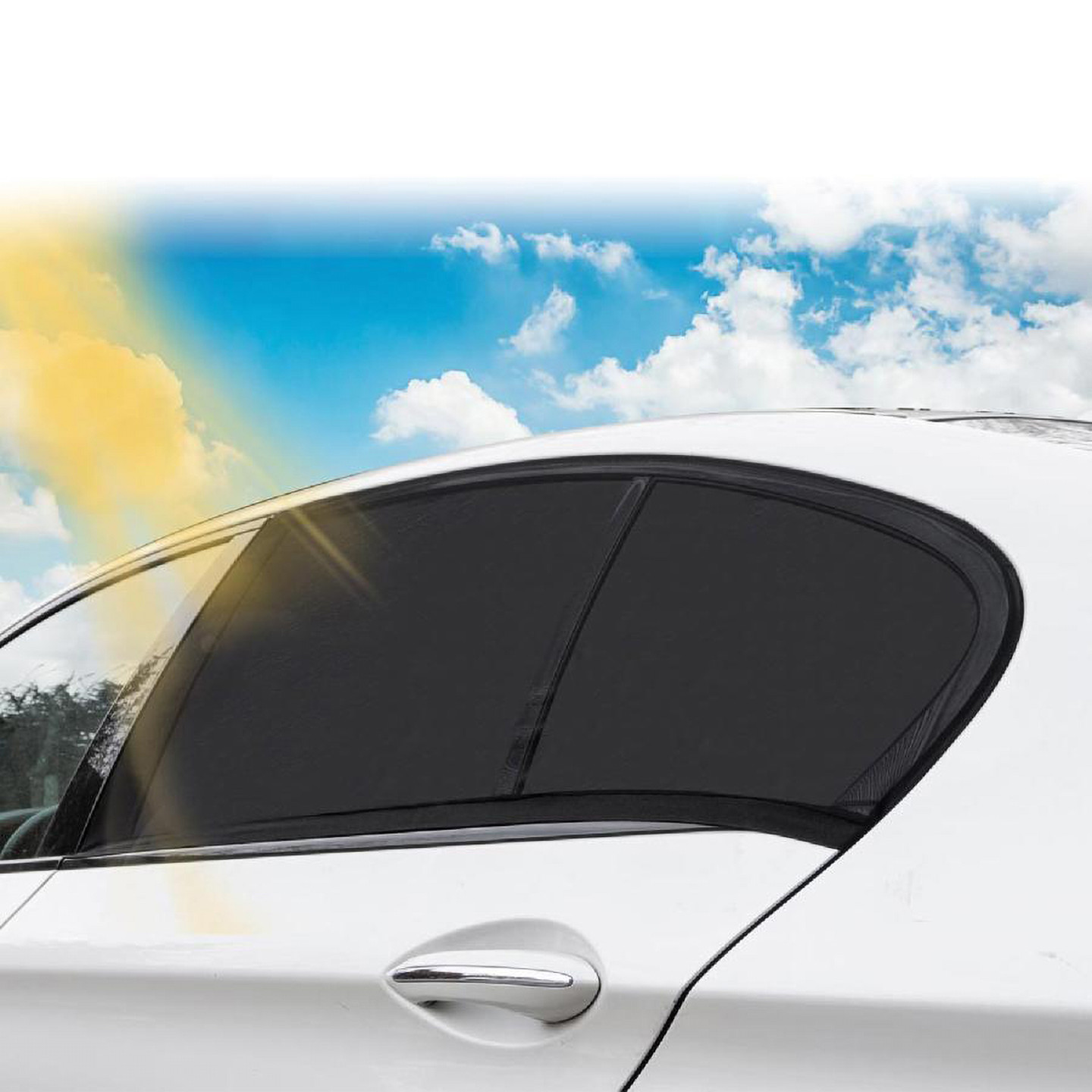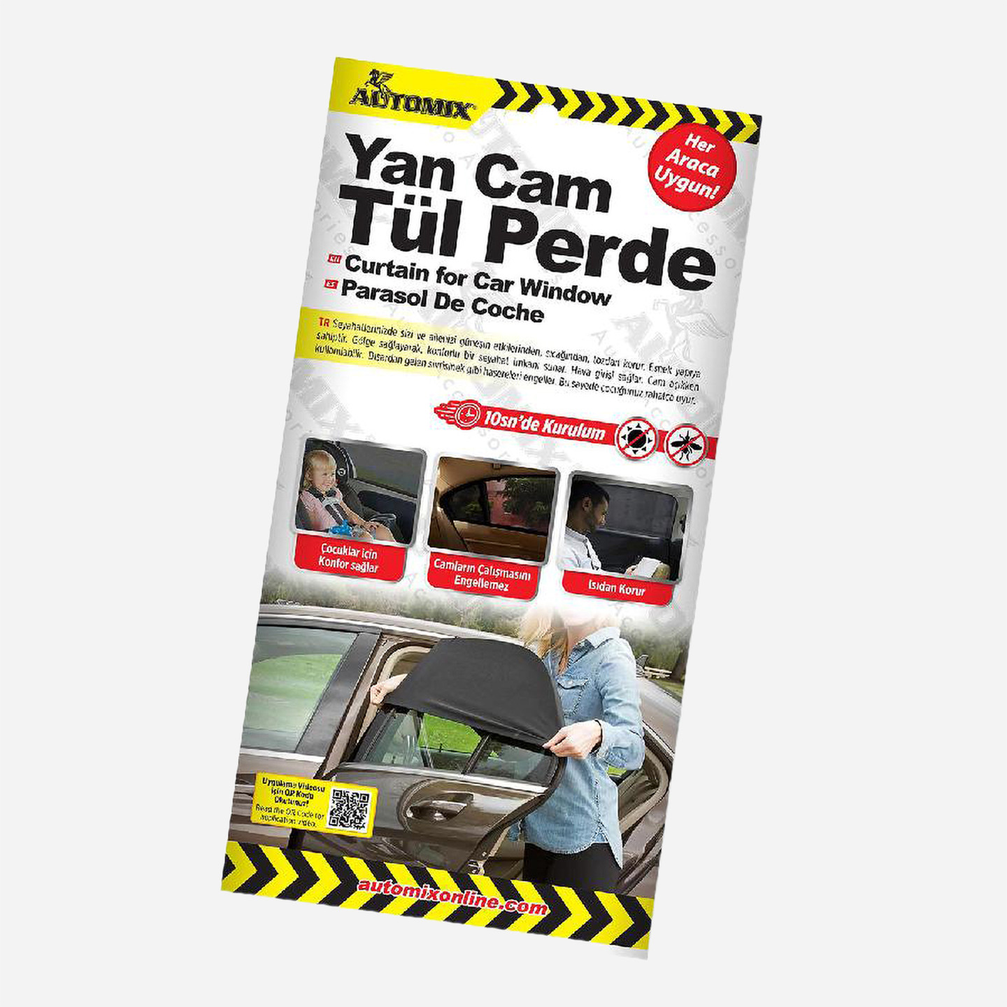• Aracın yan camına takılmak üzere tasarlanmış bir tül perde / güneşlik.