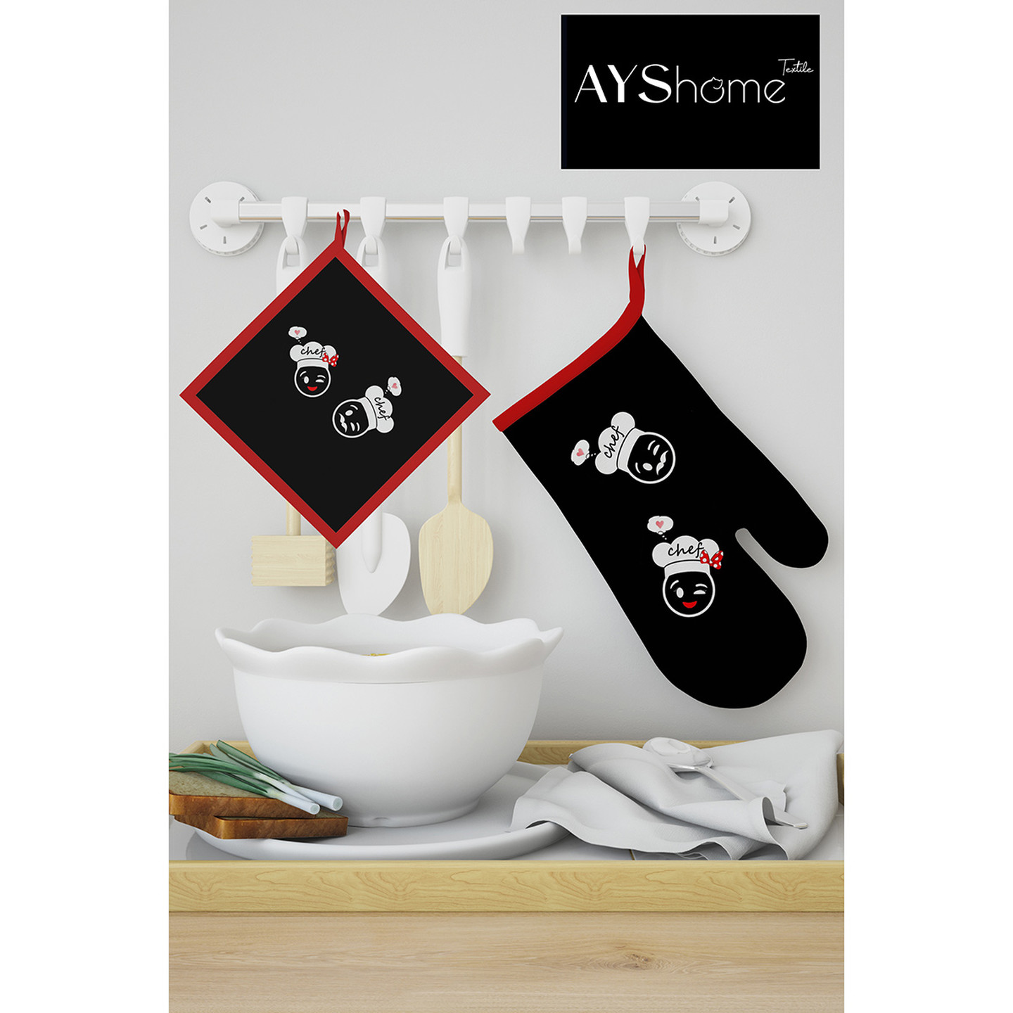 AYShome Şef Desen Eldiven Tutaç Seti