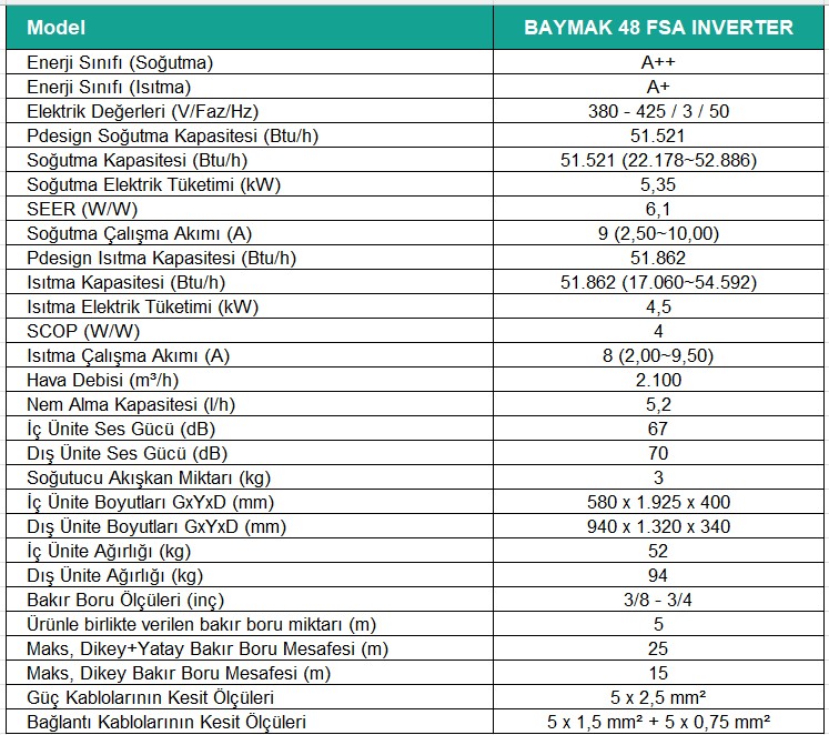 Baymak 48.000 Btu FSA R410A Salon Tipi Klima