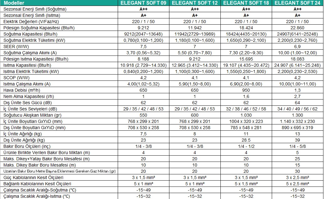 • Kutu içi Bakır Boru Uzunluğu: 9.000 Btu/H: 4 metre