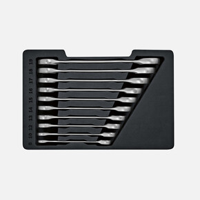 • Dar alanlar için mükemmel ve çok yönlü 10 parçalı cırcırlı anahtar seti.
