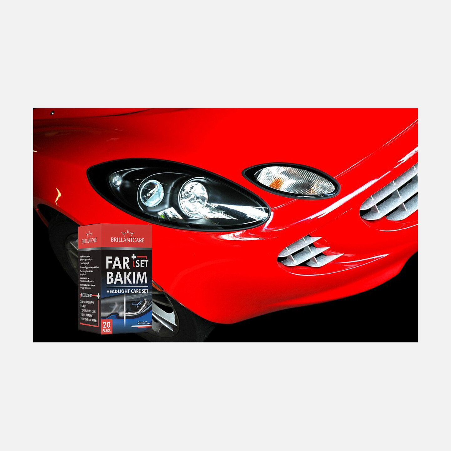 Farlarınızı BRILLANTCARE Oto Şampuanı ile yıkayınız.1 -)Az matlaşmış ve sararmış Plastik farlarda kullanımı : Plastik Far camına Çizik giderici ve parlatıcıyı dairesel hareketler uygulayarak ve köpük bloğu bezin üzerine hafif bastırarak uygulayın kuruduktan sonra temiz bez ile parlatın.2-) Çok matlaşmış ve çizilmiş farlarla kullanım: İlk önce farlarınızın etrafını kağıt bant ile bantlayın bantlanan bölgeyi ilk önce 2000 zımpara kağıdı ile su ile ıslayarak yatay ve dikey hareketler uygulayarak zımparalayın zımparayı kullanırken yüzeyi sık sık su ile ıslayınız.. Bu işlemi önce 3000 ve daha sonra 5000 zımpara kağıdıyla tekrarlayın. Ardından Çizik giderici ve parlatıcıyı dairesel hareketler uygulayarak ve köpük bloğu bezin üzerine hafif bastırarak uygulayın kuruduktan sonra temiz bez ile parlatın.DİKKAT Baskılı, lake veya kaplamalı yüzeylerde kullanmayın. Sadece plastik farlarda kullanın. Zımpara kağıdı renkli veya kaplamalı far camları üzerinde kullanmayın. İçinde ince çatlaklar veya bulanıklık bulunan farlar tamamen istediğinizdüzelme işlemi gerçekleşmez. Farların etrafındaki alanı koruma için bantla maskeleyin. FAYDALARI • Mat farlarınız yeniden Şeffaf ve saydam hale gelir• Görüntüyü iyileştirir• Farlarınızı değiştirmenize gerek kalmaz .• Basit bir uygulama ile tekrar yeni gibi olur• Uzun ömürlüdür ve hava koşullarına dayanıklıdır• Yıkamaya dayanıklıdır yüzeyde koruyucu tabaka bırakır