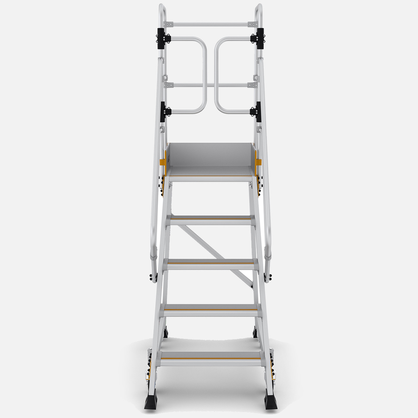 SPRINGO platformları, TÜV-SÜD EN 131-7 Kalite Sertifikasına sahiptir. Uzun süreli işlerinizde çalışma verimliliğinizi arttıran ergonomik ürünlerdir. Sağlam ve uzun ömürlüdür. 110 cm yüksek korkululukları ve emniyetli, sadece içeri açılan yaylı kapısı da güvenli çalışmanın konforunu sağlayan önemli unsurlardır.