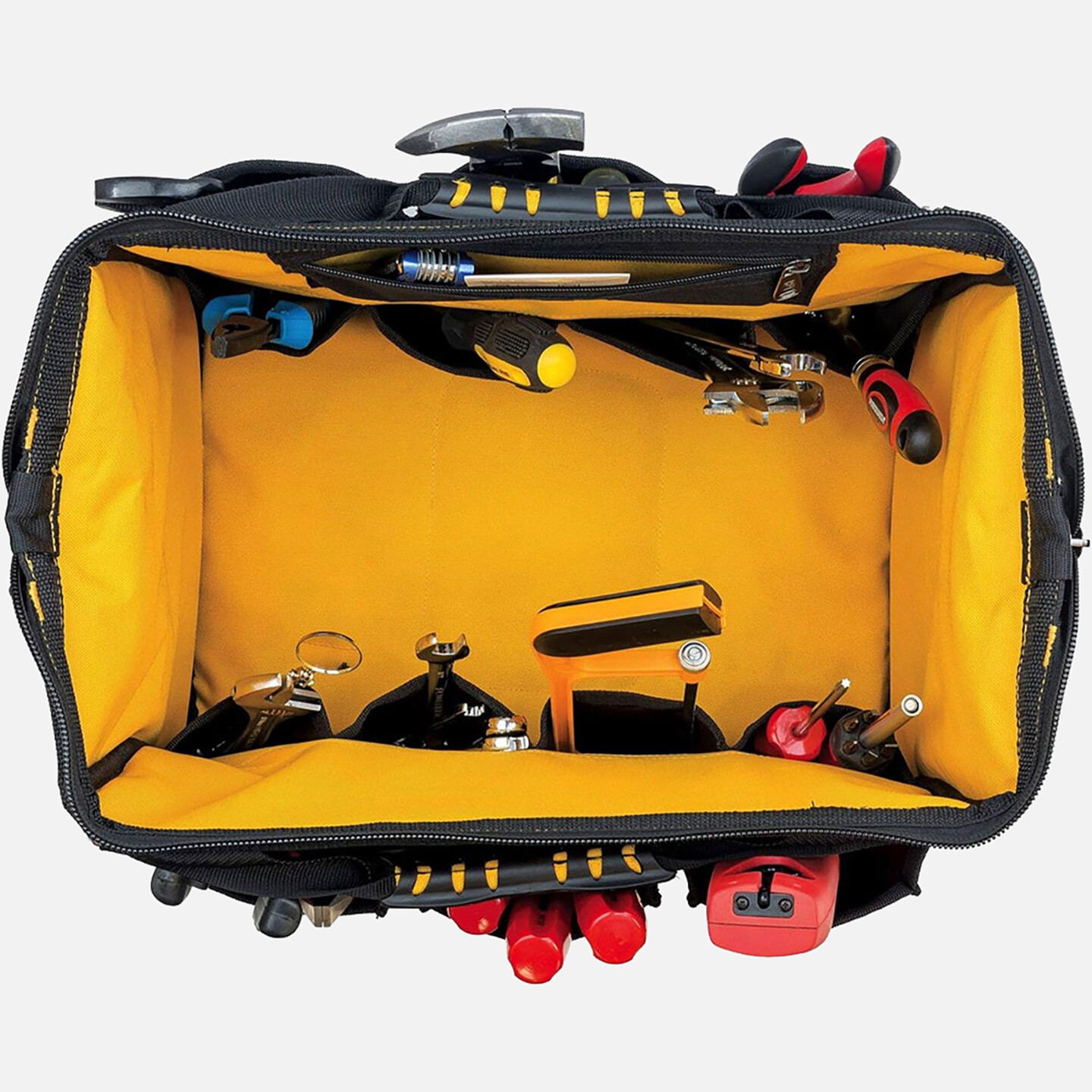 •Yüksek görünürlükteki sarı renkli iç taban çanta içerisindeki aletleri ve parçaları hızlı bir şekilde bulmanıza yardımcı olur