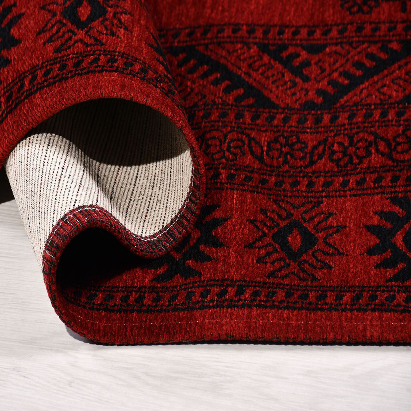 • Kırmızı ve siyah tonlarda etnik desenlere sahiptir.