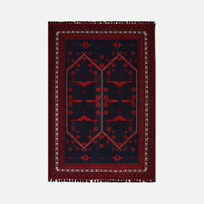 Kırmızı ve siyah tonlarda etnik desenlere sahiptir.