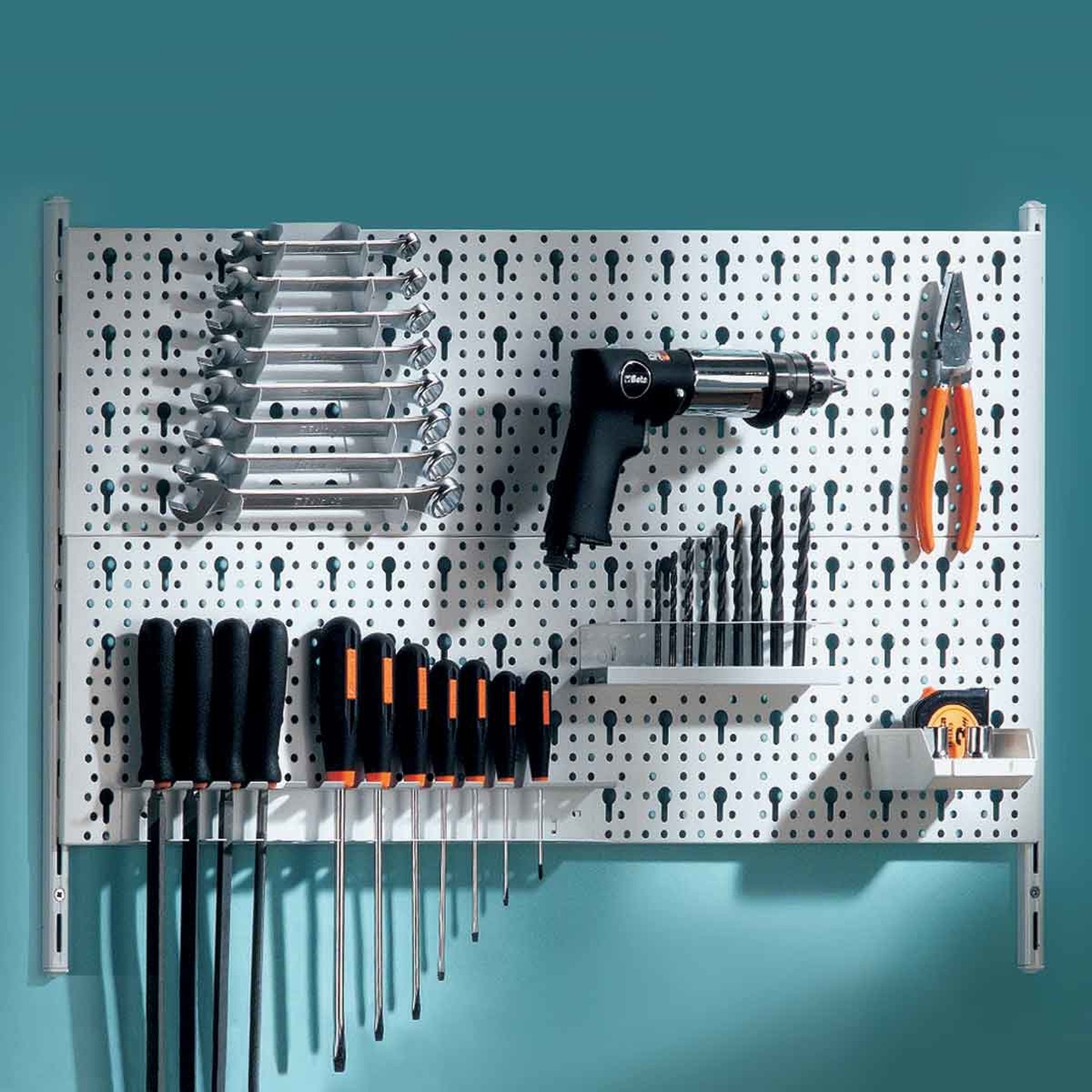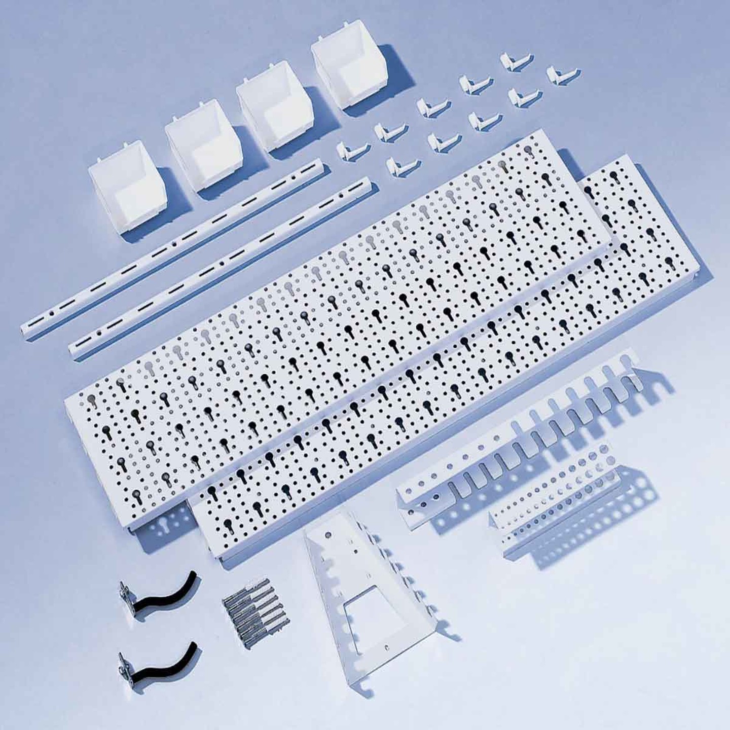 Izgara 50'de delik aralığına sahip duvar dikmeleri ile birleştirilebilir delikli duvar askı kiti