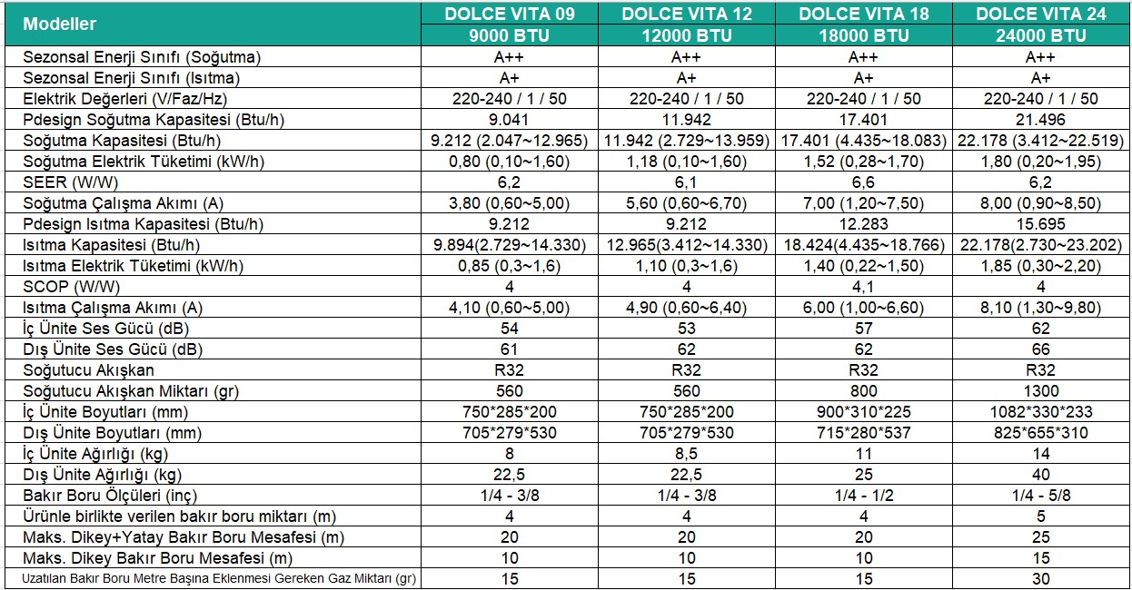Dolce Vita 24.000 Btu Inverter A++ Duvar Tipi Klima