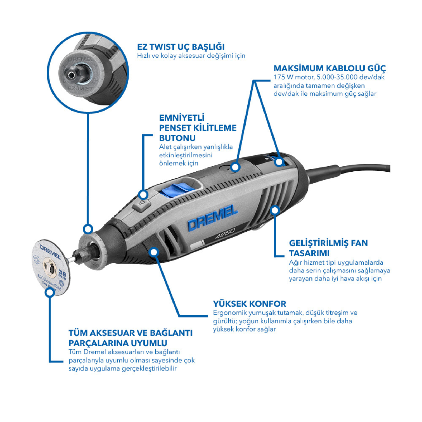 Dremel 4250 (4250-35) Çok Amaçlı El Motoru