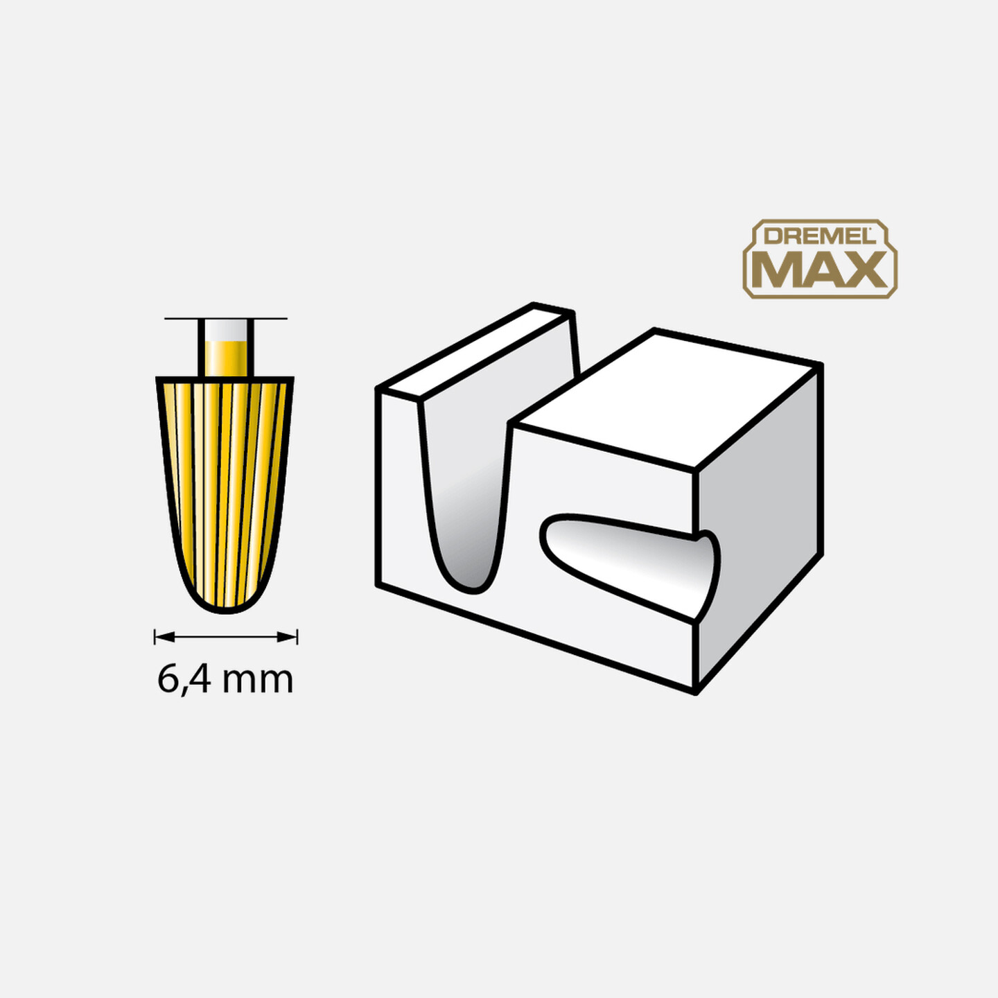 •Ahşap ve daha fazlası için eğimli şekilli 6,4 mm Dremel Max oyma ucu