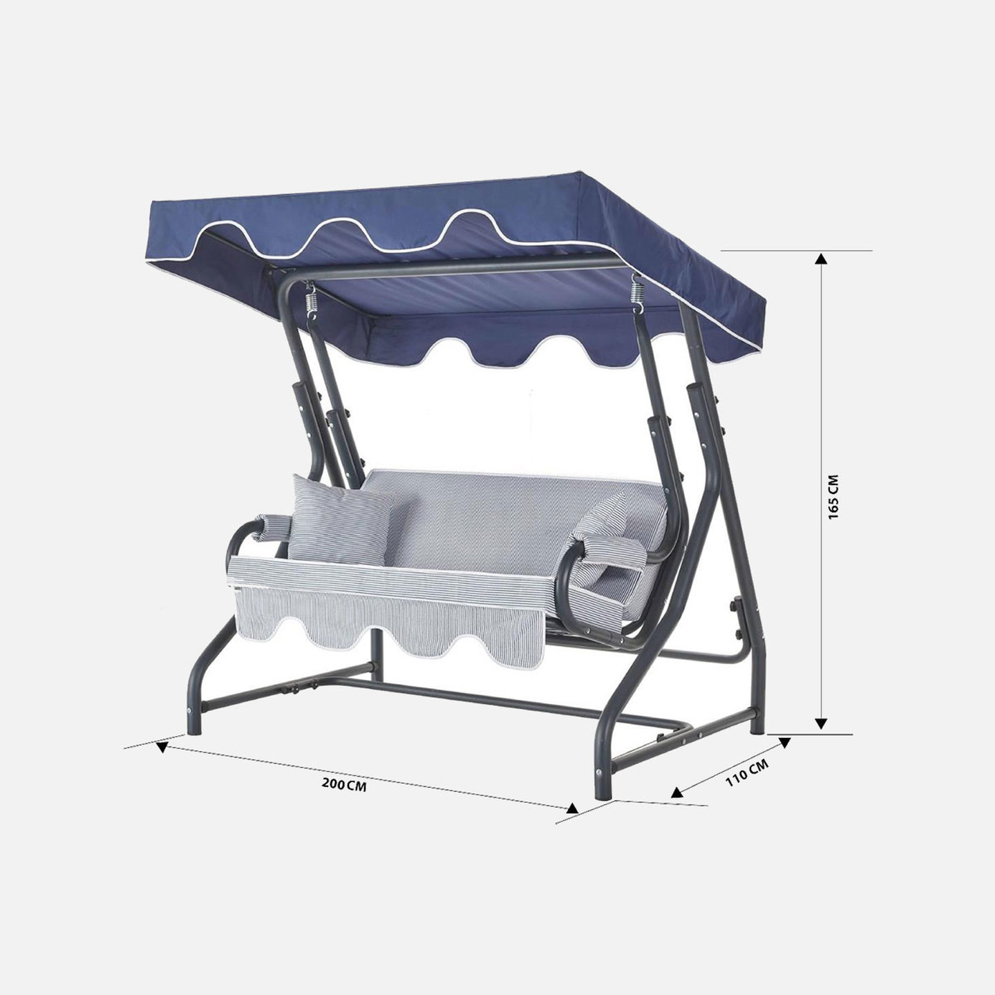 Erinöz Olea 3 Kişilik Yatarlı Bahçe Balkon Teras Salıncağı -Lacivert Çizgili
