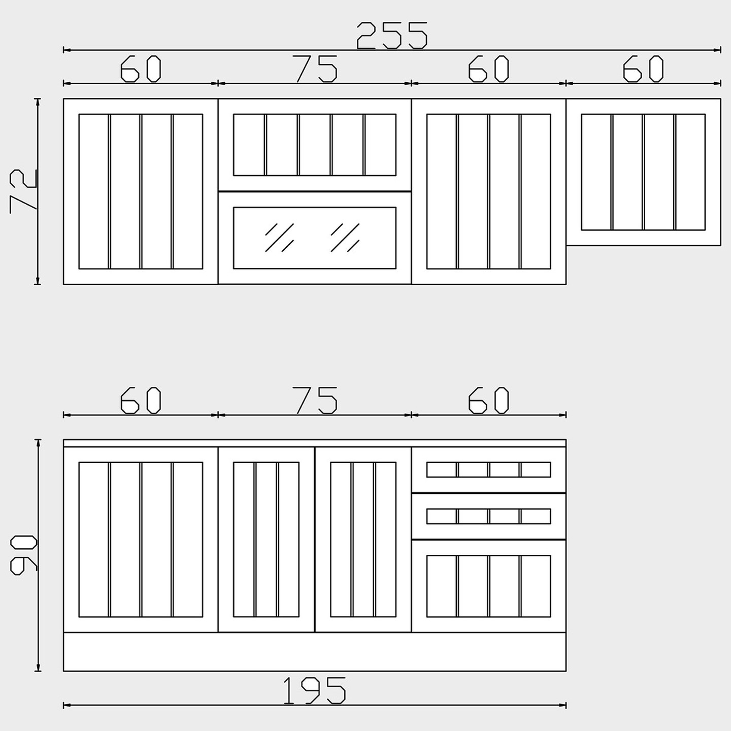 - Üst Modül Genişlik 255 cm