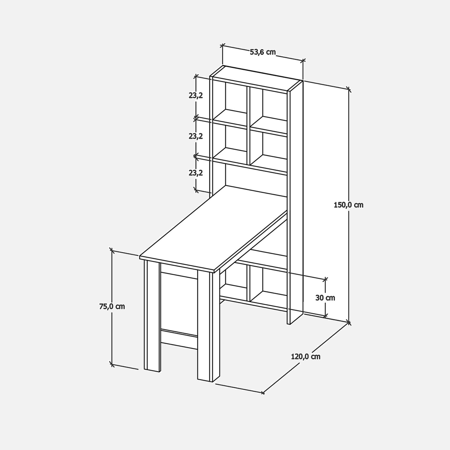 • Ürün Ölçüsü: G:120xD:53,6xY:150cm