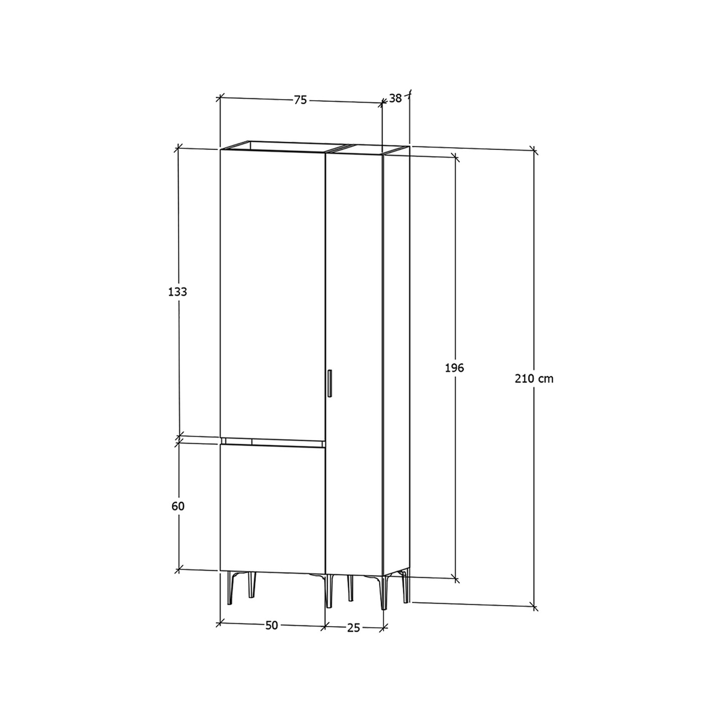 • Ürün ölçüsü: G:75xD:38xY:210cm