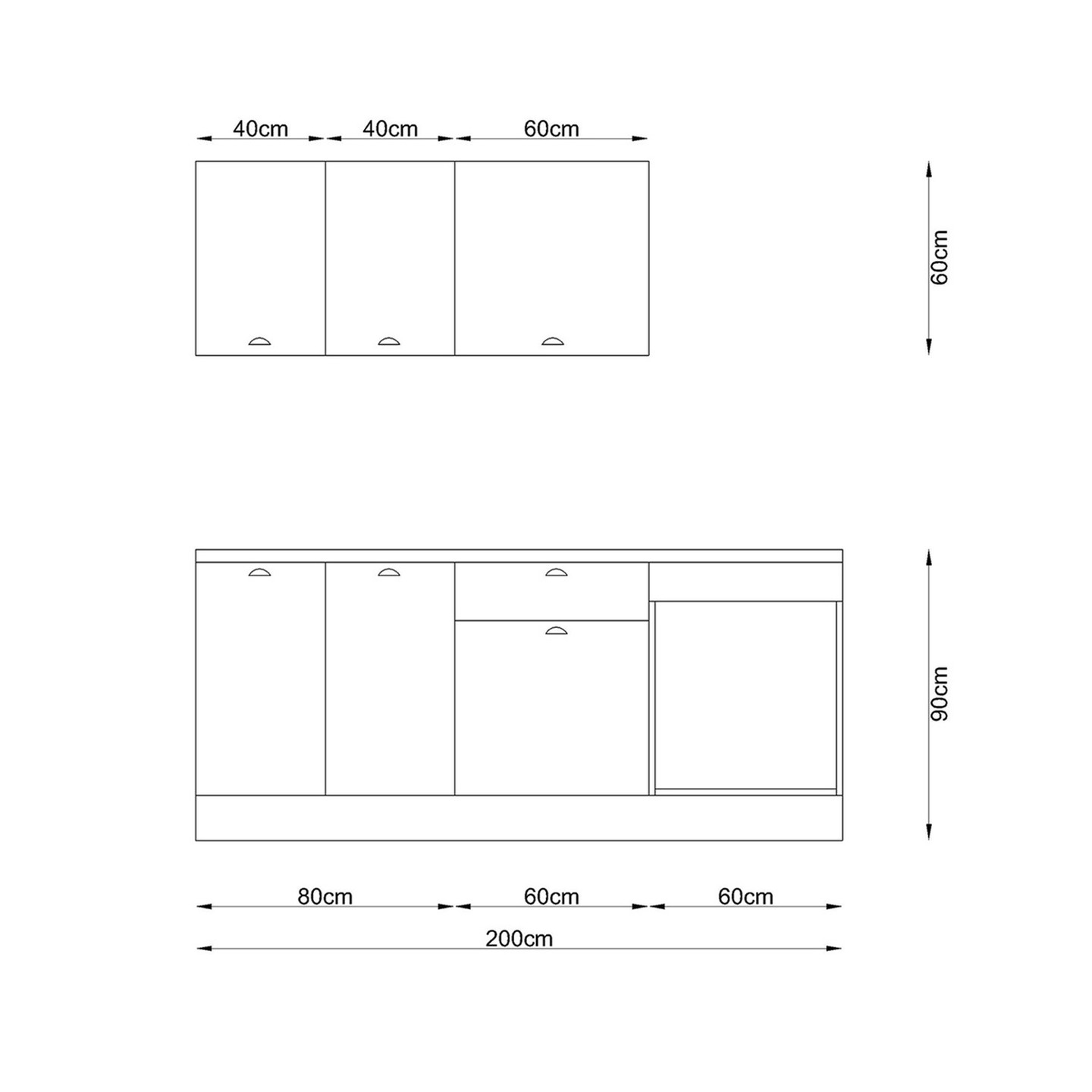 • Alt Modül Ölçüsü: G:200xD:60xY:90cm