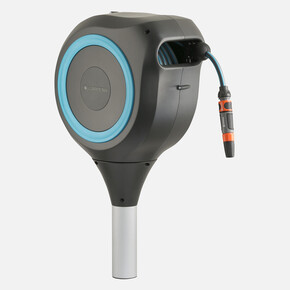 Bahçe hortumu kutusu RollUp M sadece bahçe hortumunuz için güvenli ve yerden tasarruf sağlayan bir depolama alanı sağlamakla kalmaz aynı zamanda orta büyüklükteki bahçenizin nasıl yorulmadan sulanabileceği sizi çok şaşırtır
