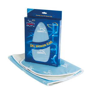 • 3,5 mm keçe ve 3 mm sünger destekli, yüksek kalitede ütüleme imkanı sağlayan ısıya dayanıklı, özel logolu dokuma kumaş (buz mavisi)