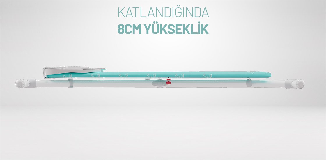 • Katlandığında 8 cm yükseklikte dar boşluklara yerleştirebilme kolaylığı.