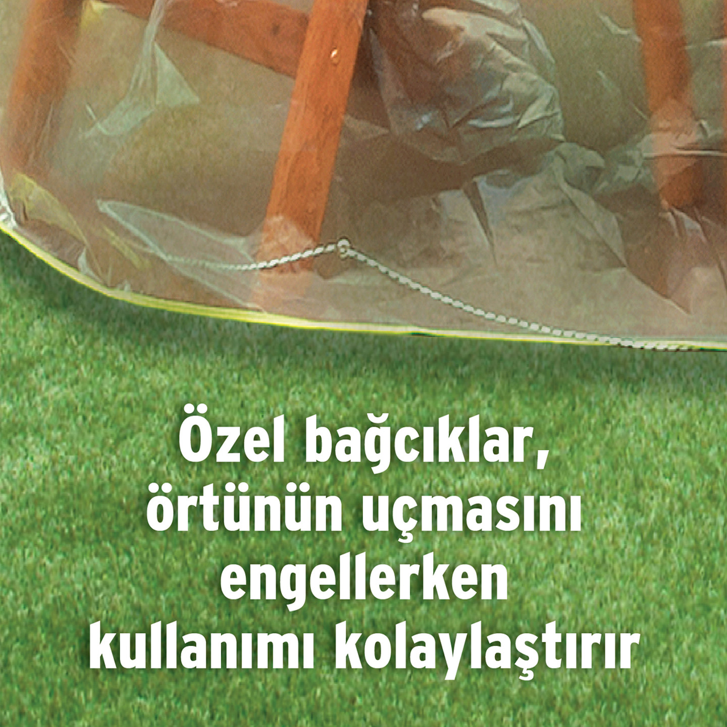 Ürünle birlikte örtünün çevresi boyunda sabitleme ipi gönderilmektedir