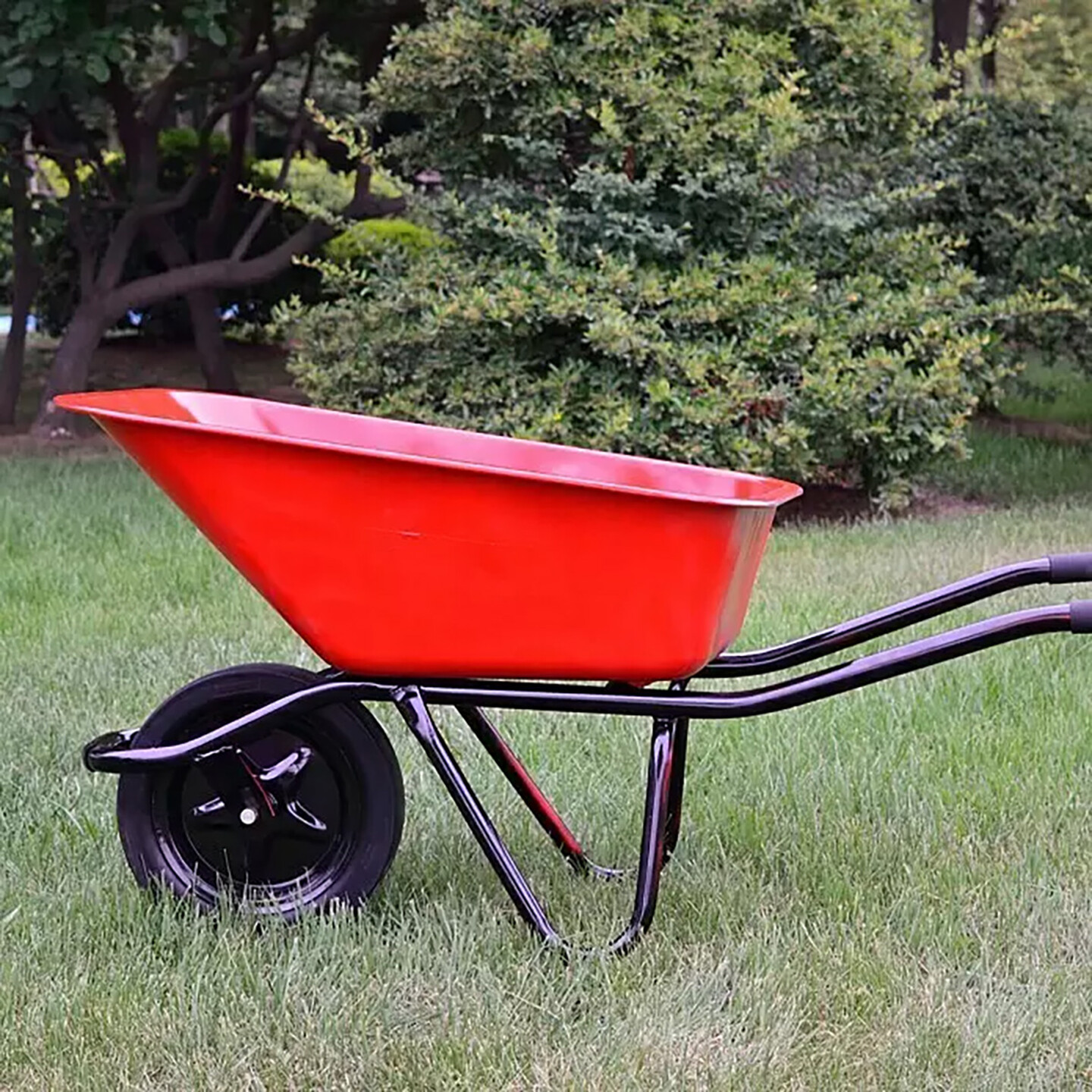 • Kırmızı boyalı el arabasında, patlamaya dayanıklı dolgu lastik sayesinde patlak lastikler geçmişte kaldı.