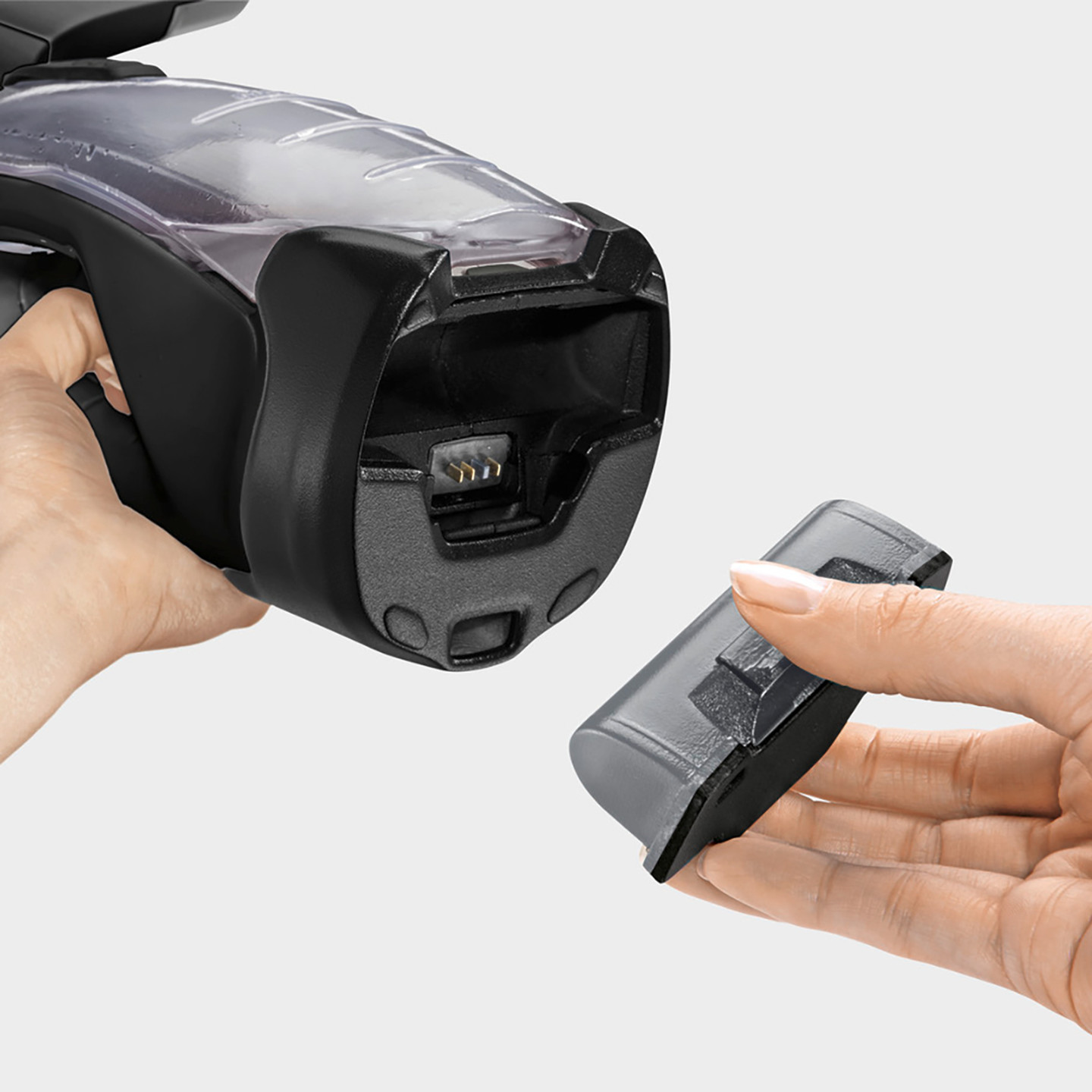Değiştirilebilir ve çıkarılabilir pili sayesinde bütün camlar kesintisiz temizlenir.