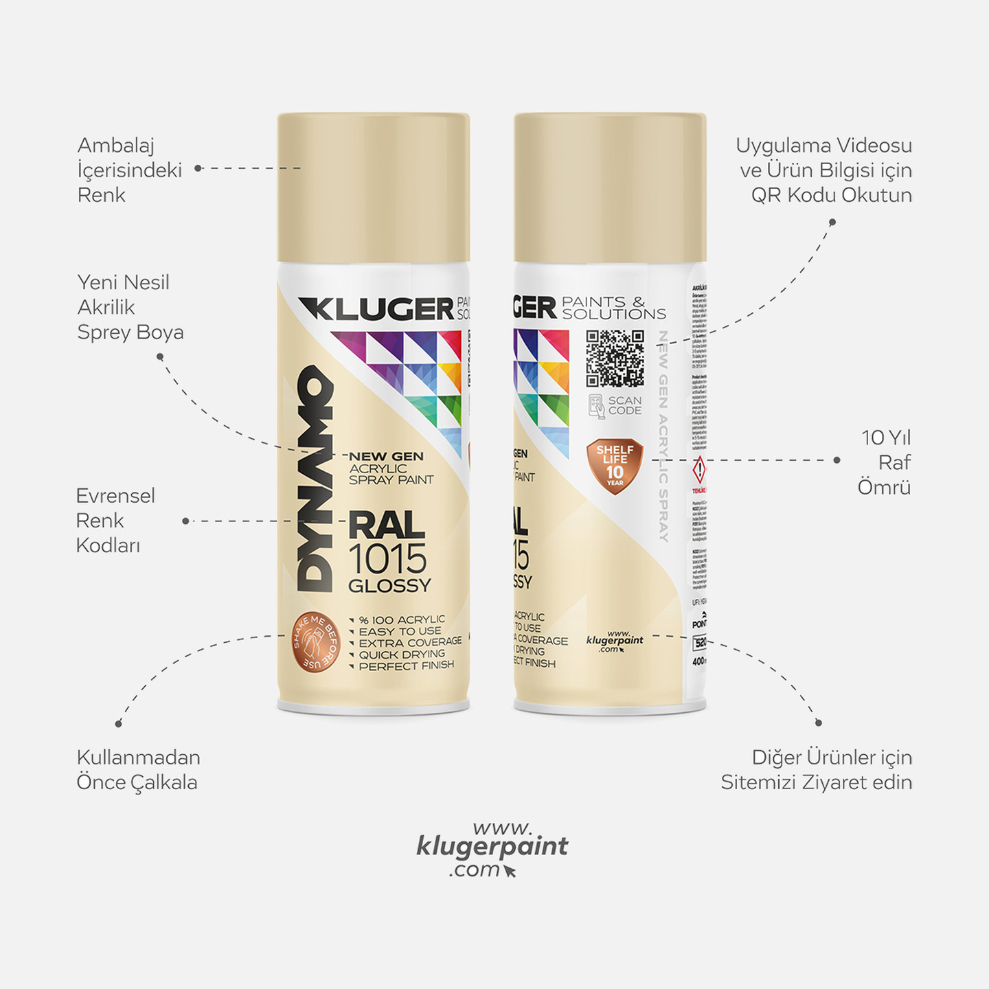 Kluger Dynamo Akrilik Düz Sprey Boya Krem RAL 1015 400 ML