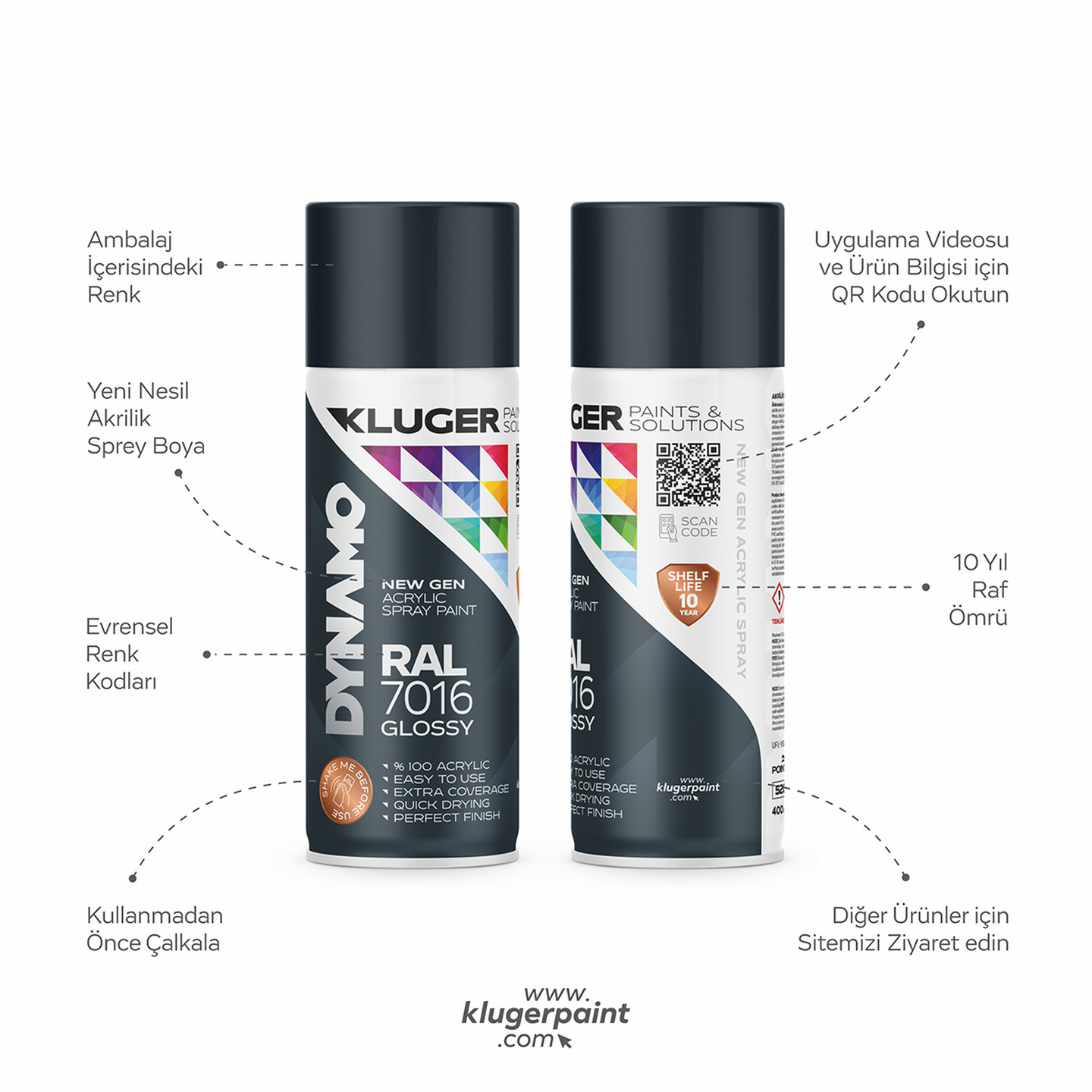 Kluger Dynamo Akrilik Düz Sprey Boya Parlak Siyah RAL 9005 400 ML