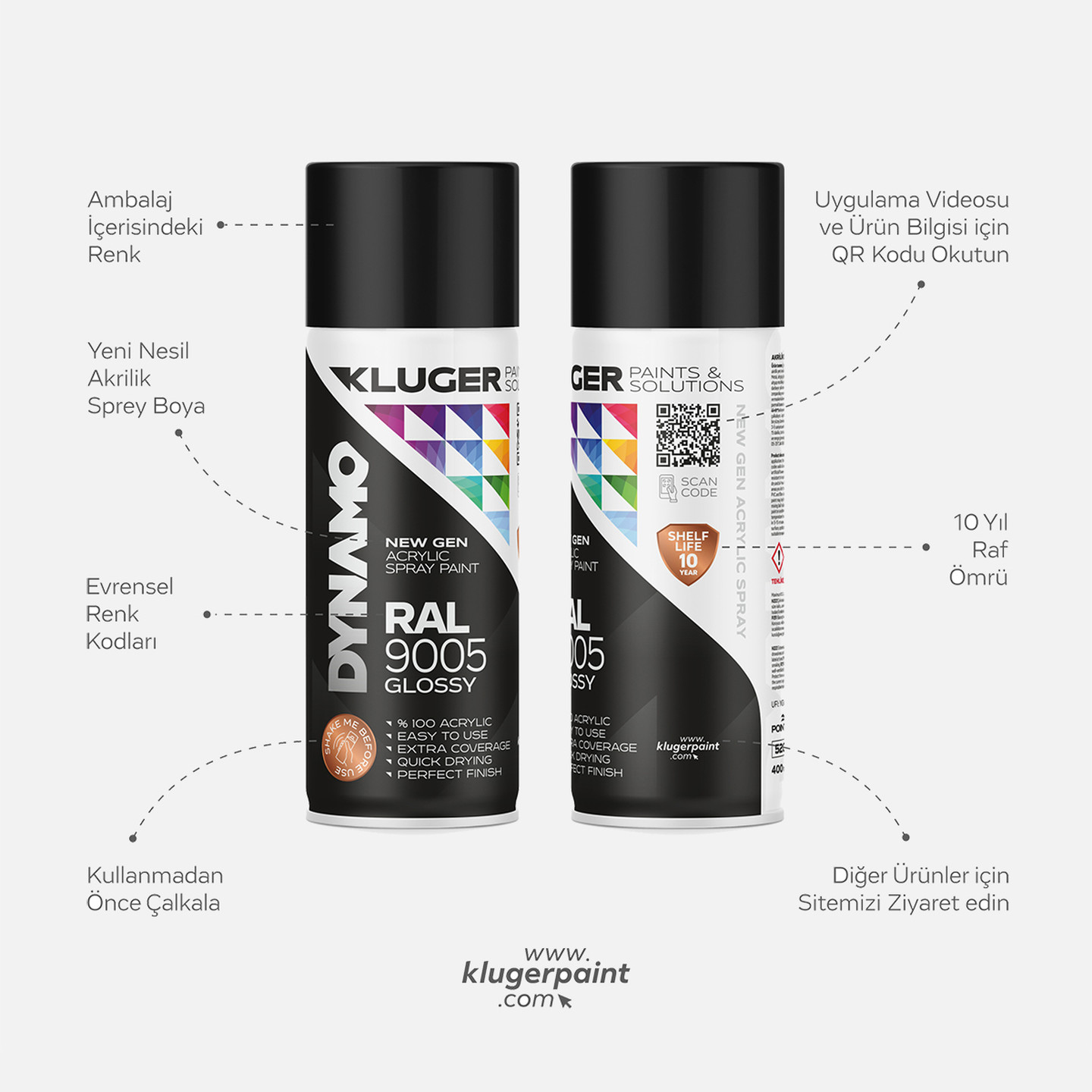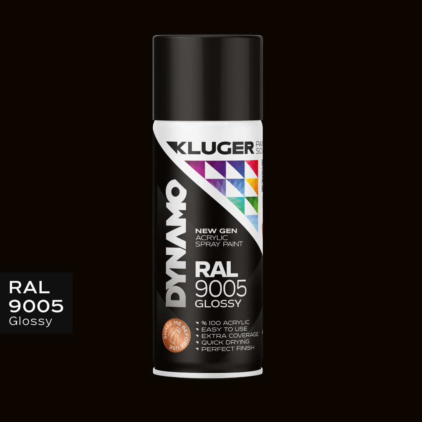 Kluger Dynamo Akrilik Düz Sprey Boya Parlak Siyah RAL 9005 400 ML