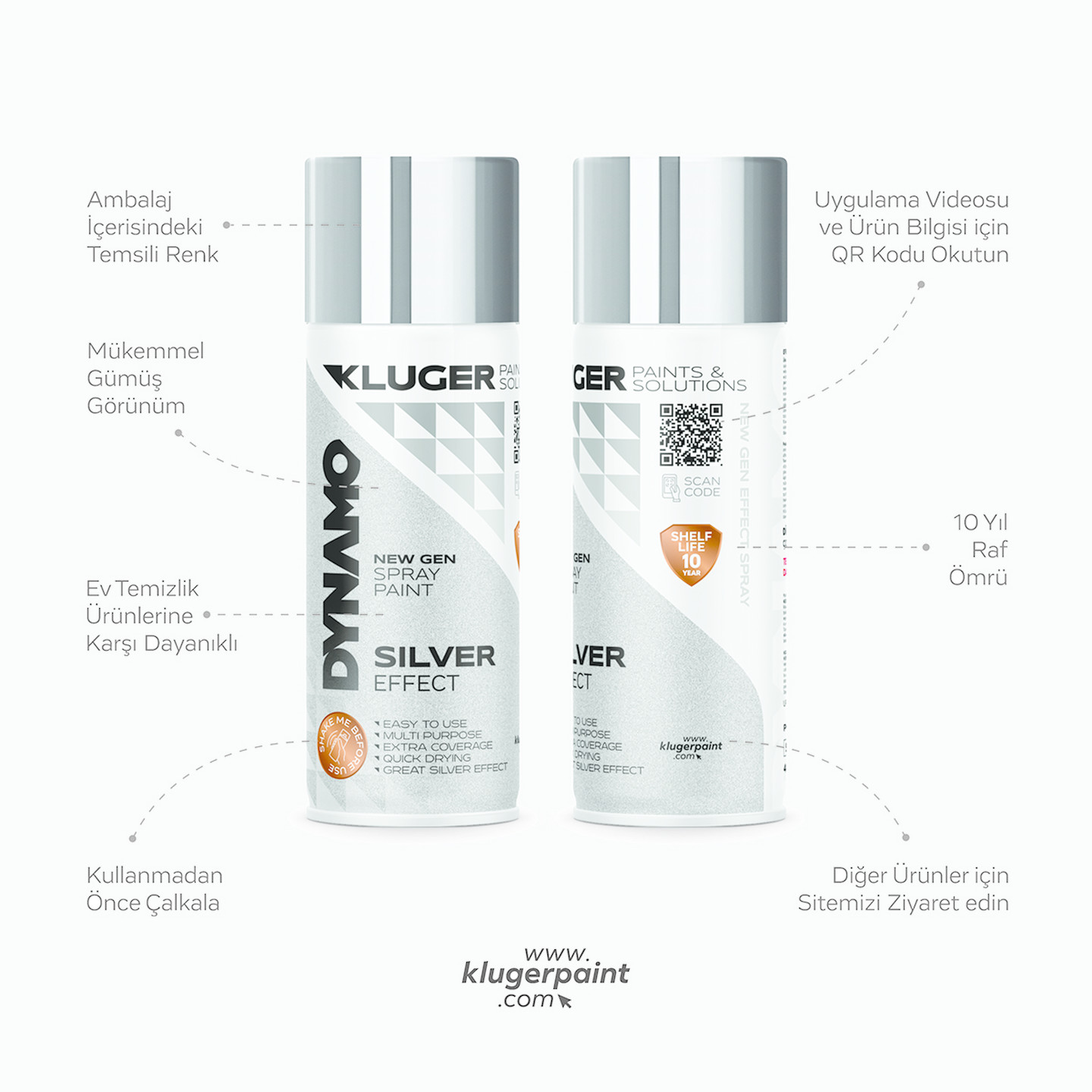 Kluger Dynamo Sprey Boya Gümüş Efekt 401 400 ML