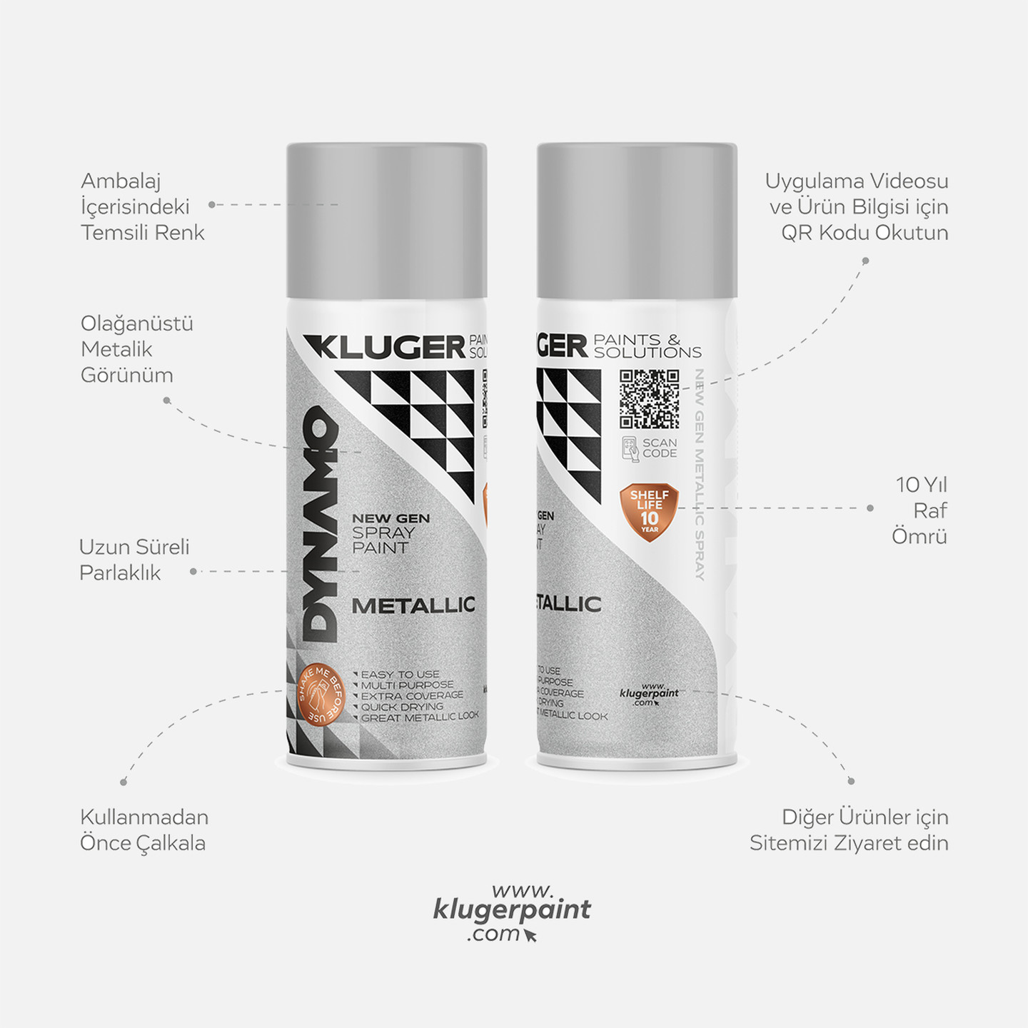 Kluger Dynamo Sprey Boya Metalik Gri 410 400 ML