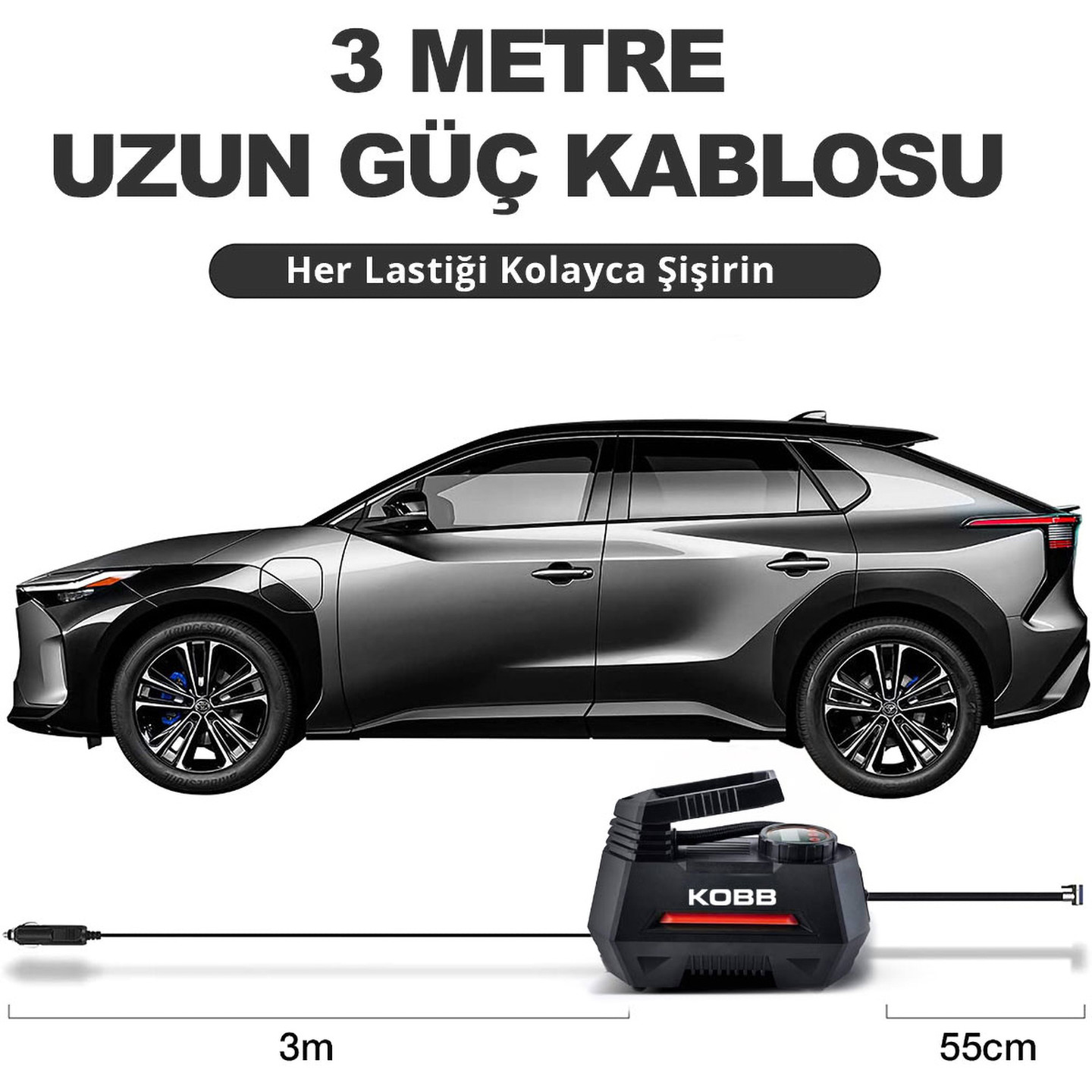 KOBB KB180 12Volt 150 PSI Ayarlanabilir Dijital Basınç Göstergeli Lastik Şişirme Pompası