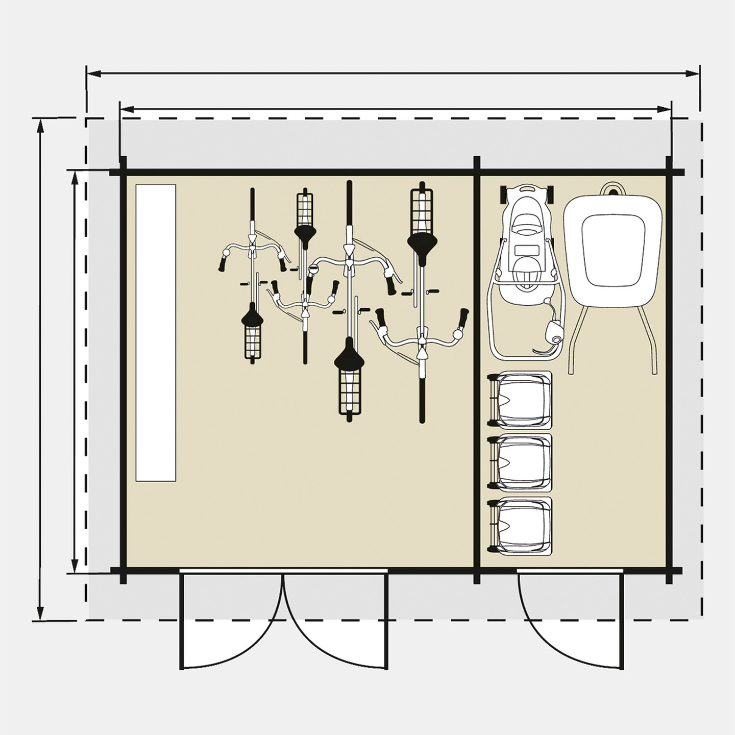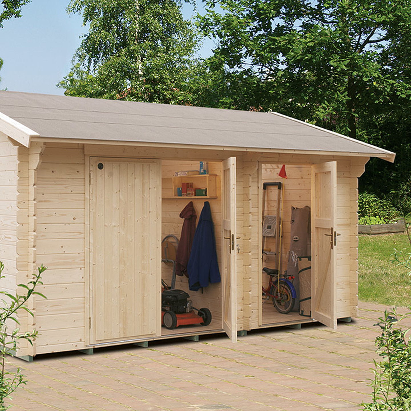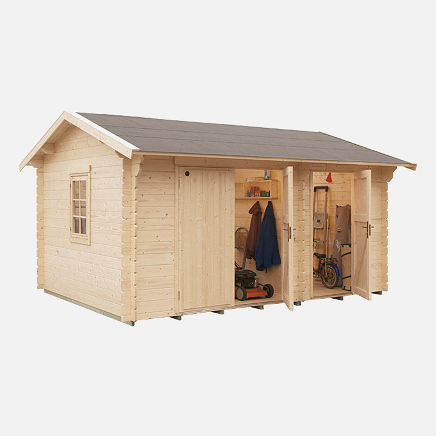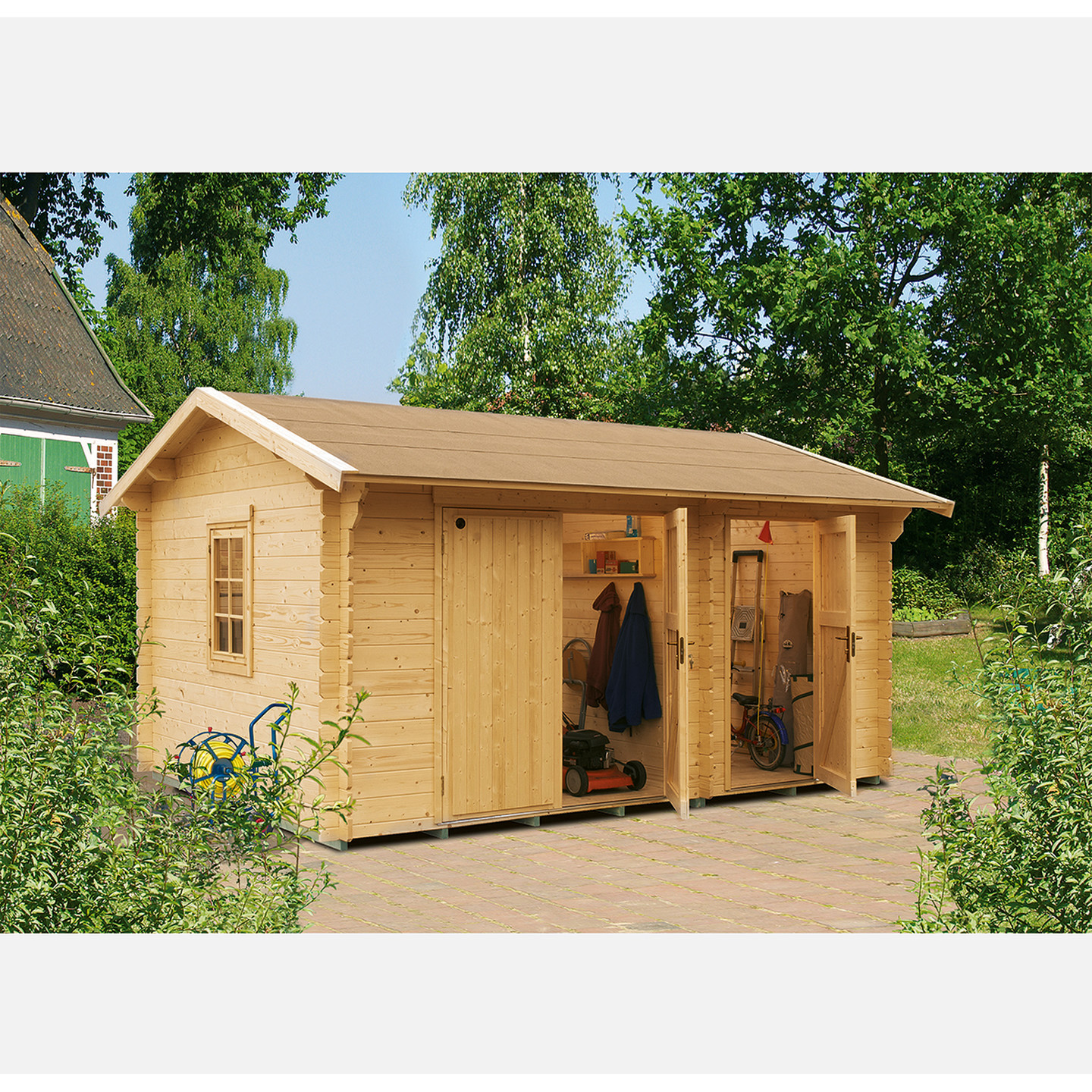 • 12,3m²'lik Lahja ahşap ev, bahçe mobilyalarınızı ve saklamak istediğiniz her ekipmanınızı depolamak için uygundur.
