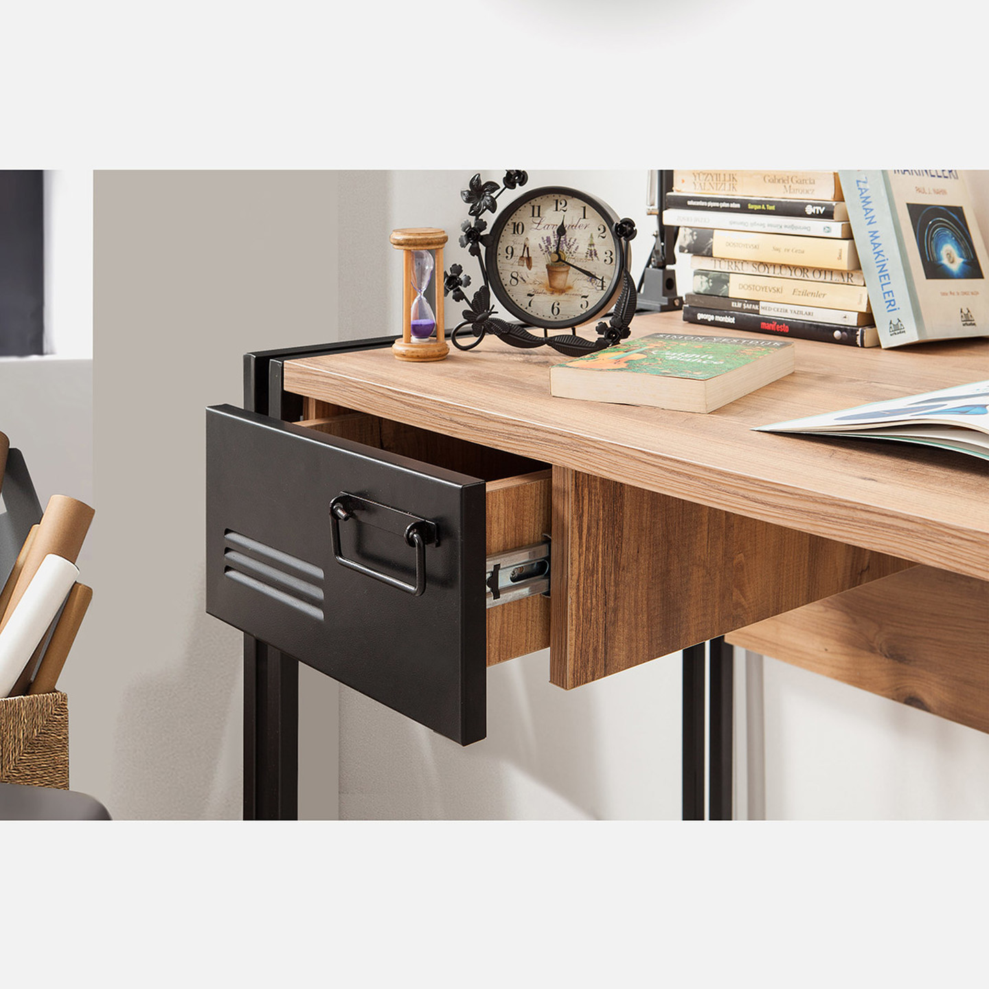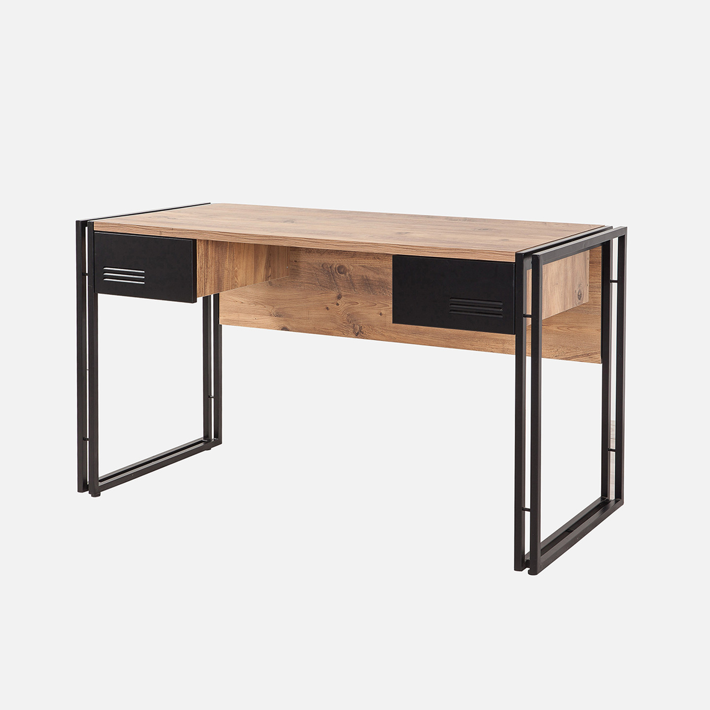 Lar İndustrial Metal Çekmeceli Çalışma Masası Açık Kahverengi