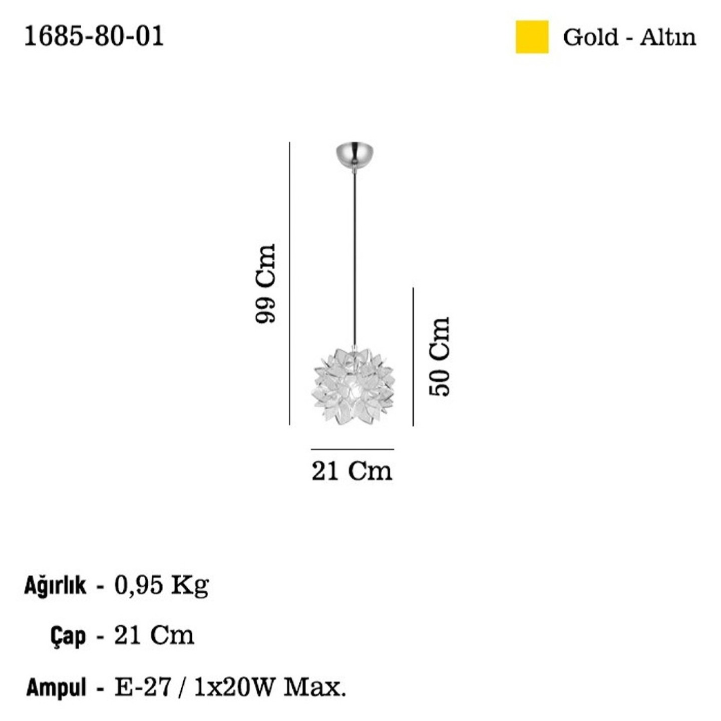 • Duy Tipi: E-27 / 1x20 W