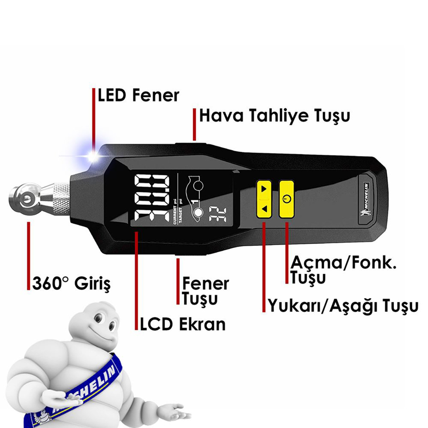 Michelin MC12295 99PSI Dijital Lastik Basınç Ölçer